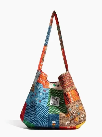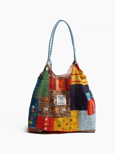 衣都精品- 新款復古拼貼雙面背帆布包