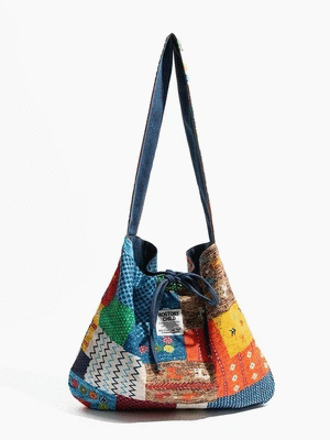衣都精品- 新款復古拼貼雙面背帆布包