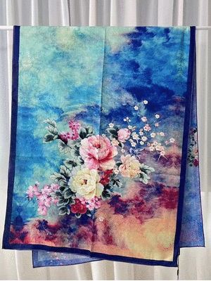 衣都精品- 新款復古百搭手工捲邊香雲紗圍巾