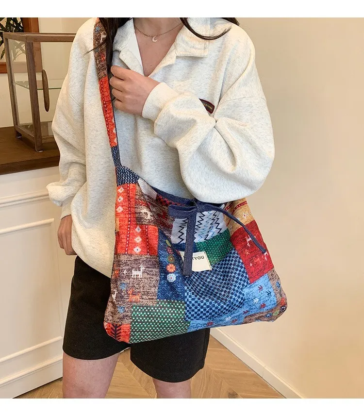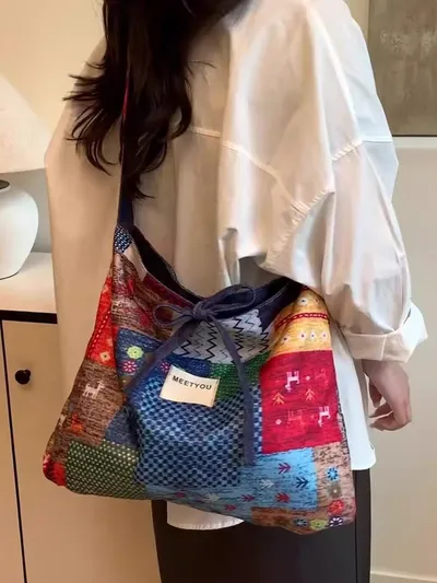 衣都精品- 新款尼泊爾彩色撞色拼布托特包