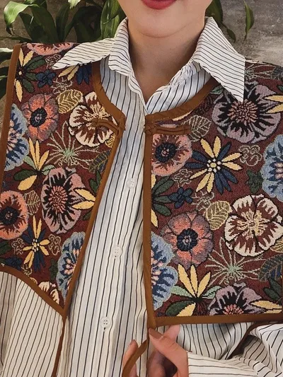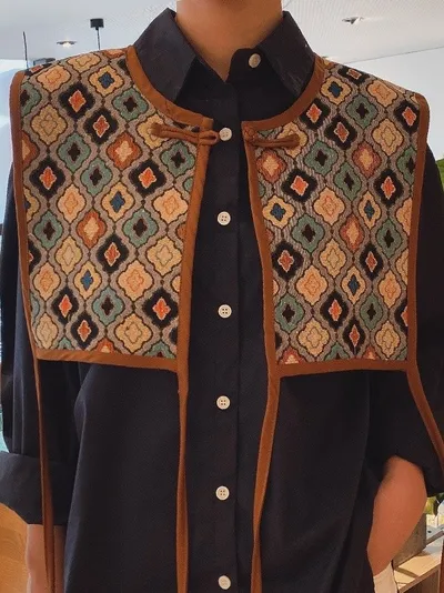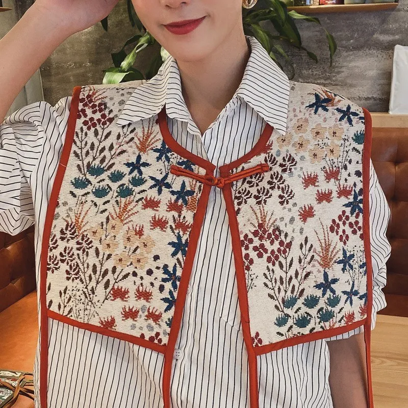 衣都精品- 新款民族風刺繡小披肩馬甲圍巾