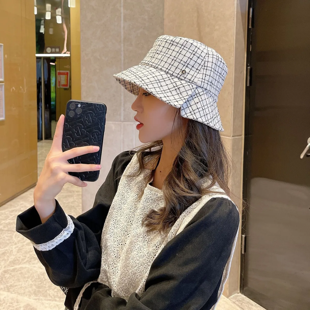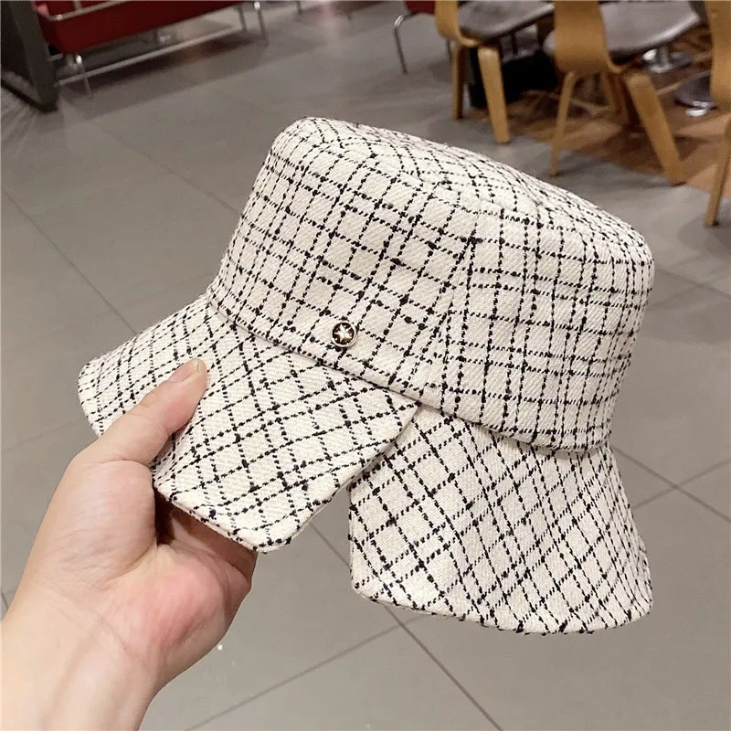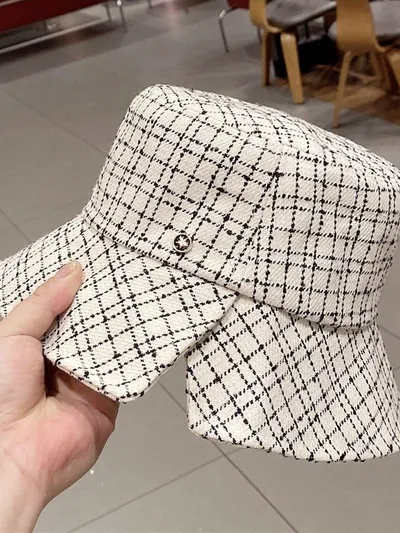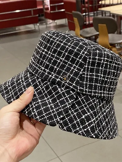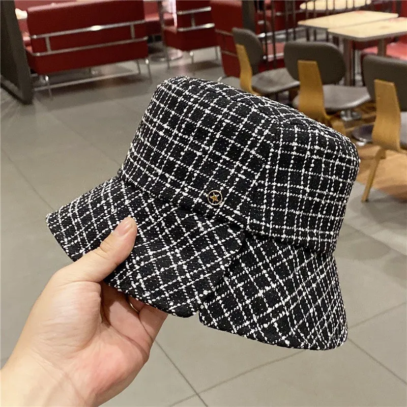 衣都精品- 新款復古英倫格紋星標開叉漁夫帽