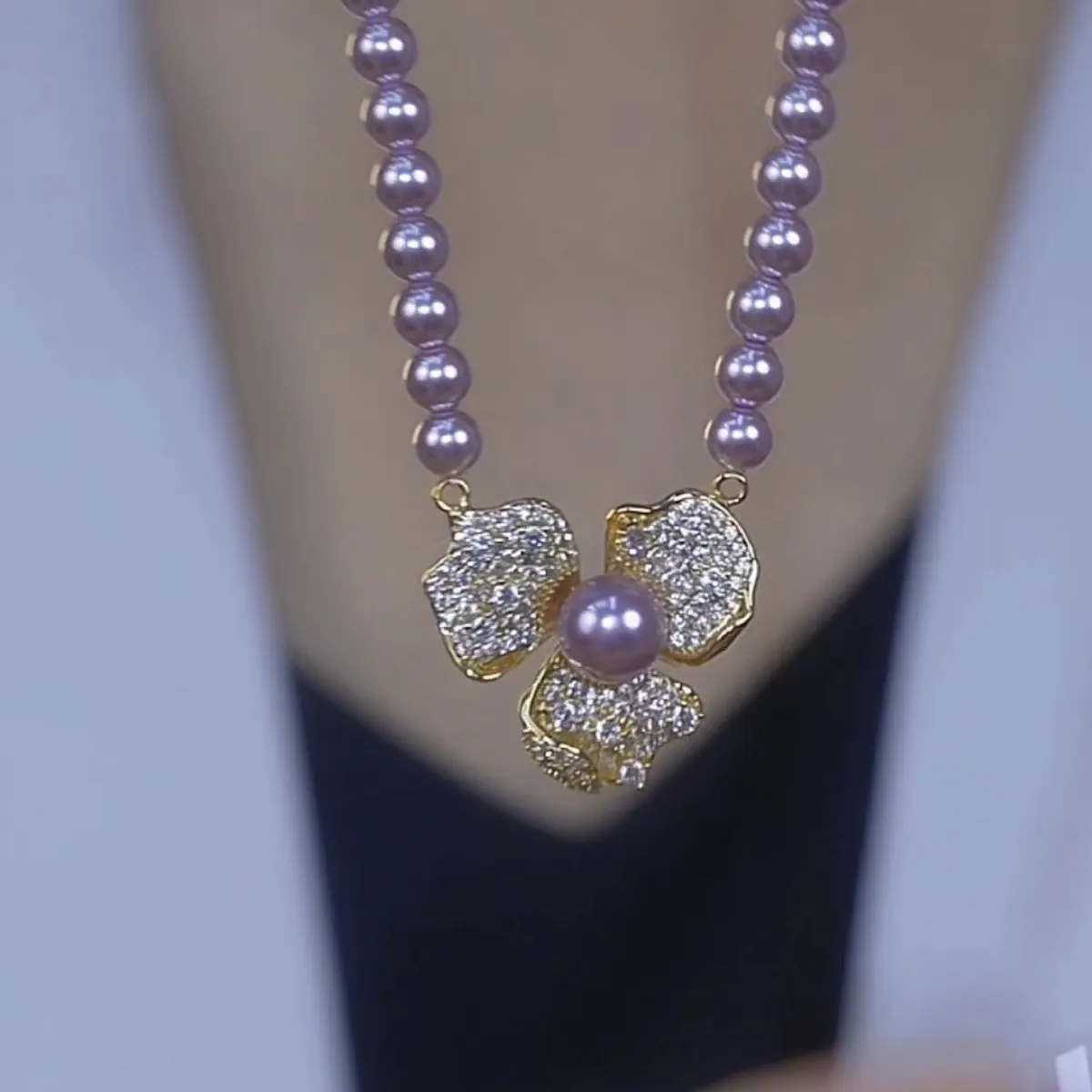 衣都精品- 新款法式珍珠方形水晶方塊項鍊