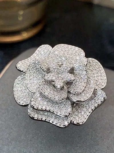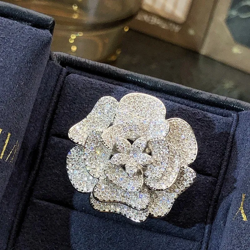 衣都精品- 新款時尚復古氣質山茶花滿鋯戒指