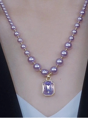 衣都精品- 新款法式珍珠方形水晶方塊項鍊