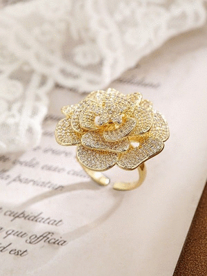 衣都精品- 新款時尚復古氣質山茶花滿鋯戒指