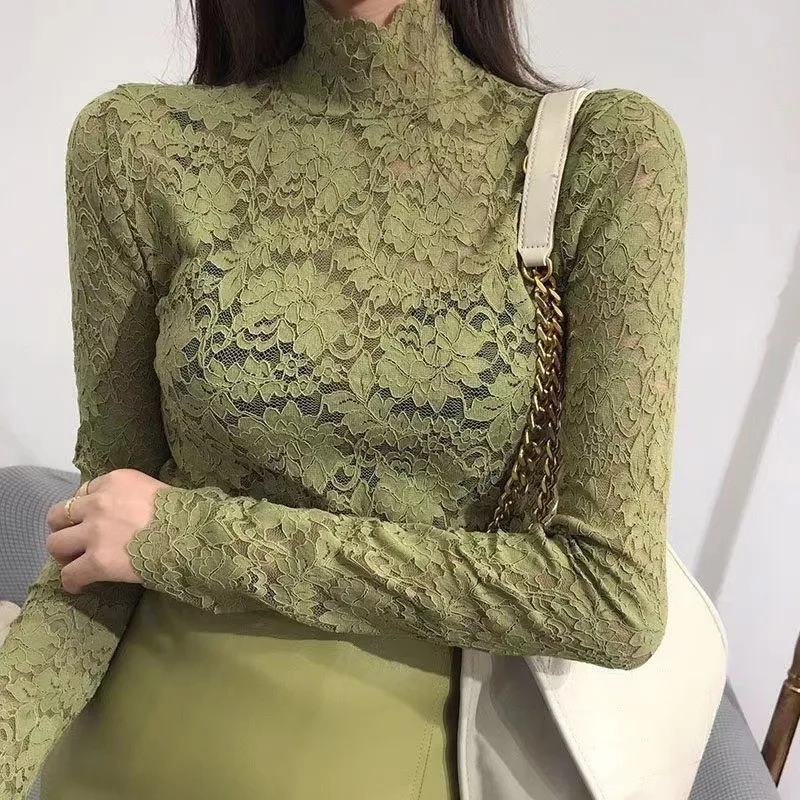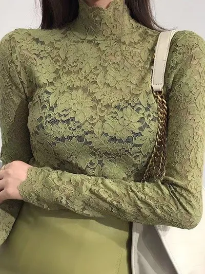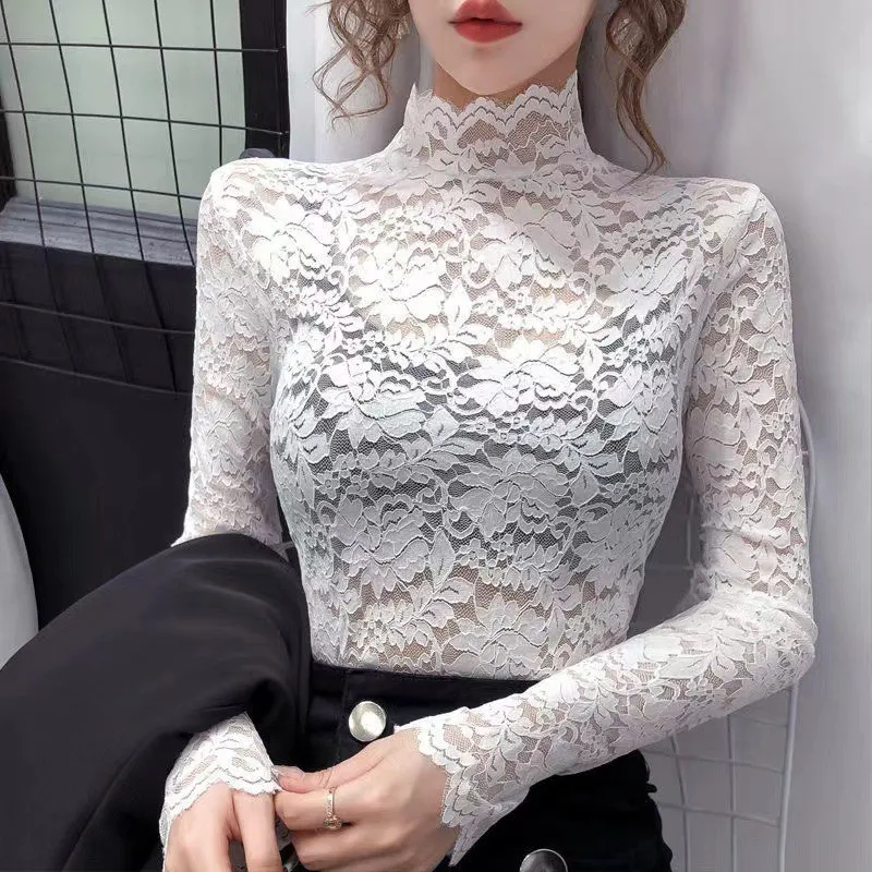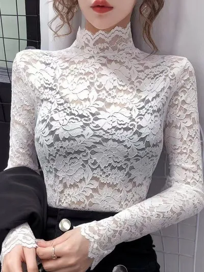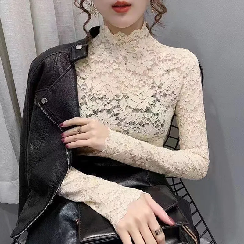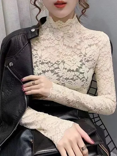 衣都精品- 新款高領磨毛蕾絲百搭打底衫上衣