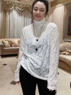 衣都精品- 新款高領磨毛蕾絲百搭打底衫上衣