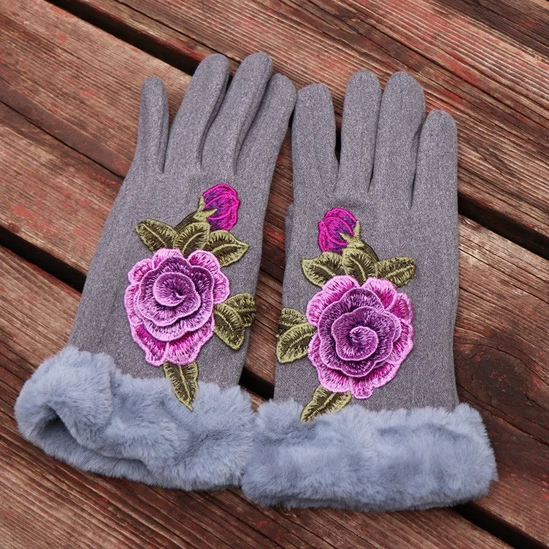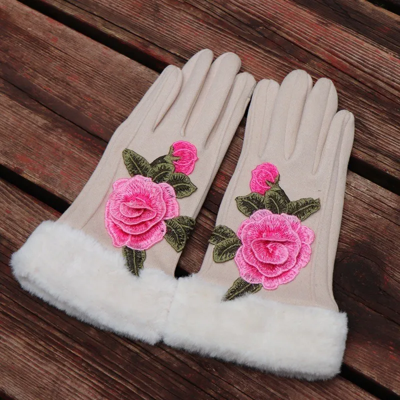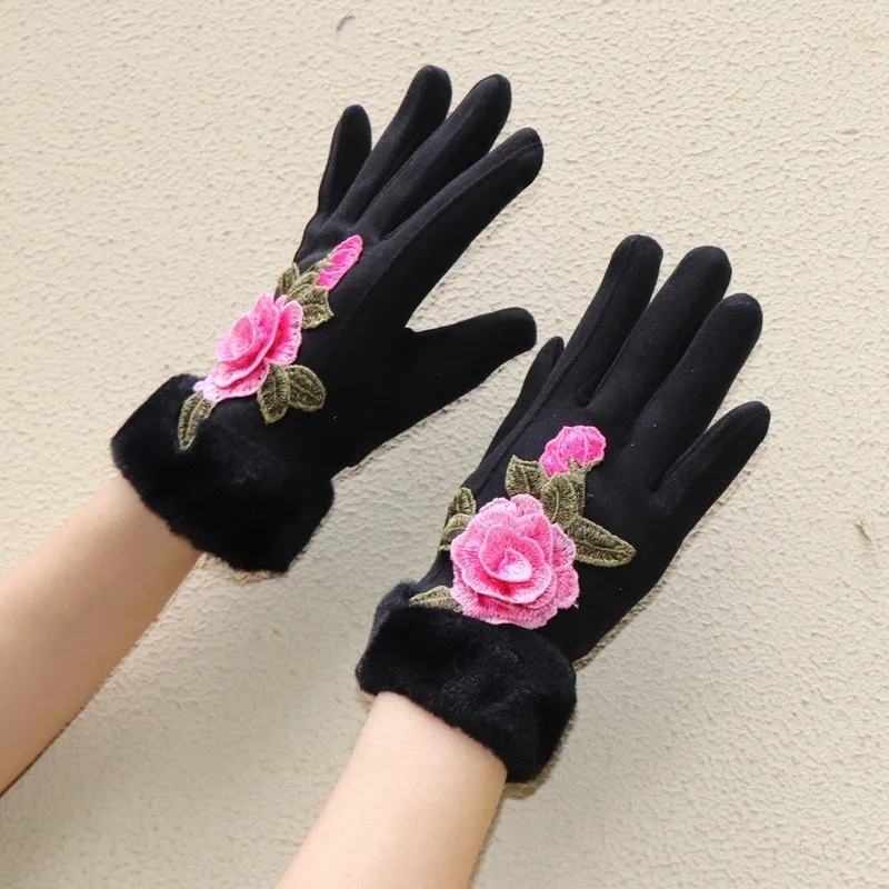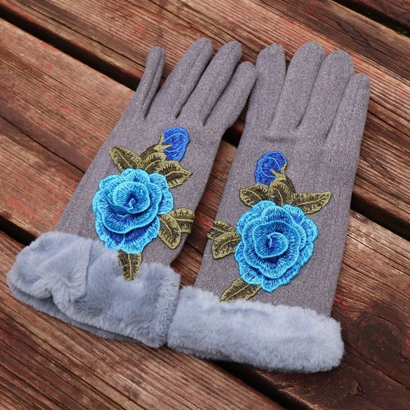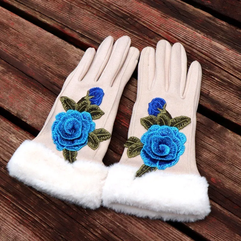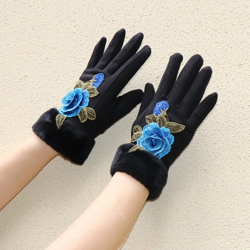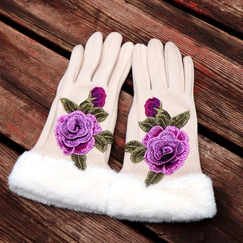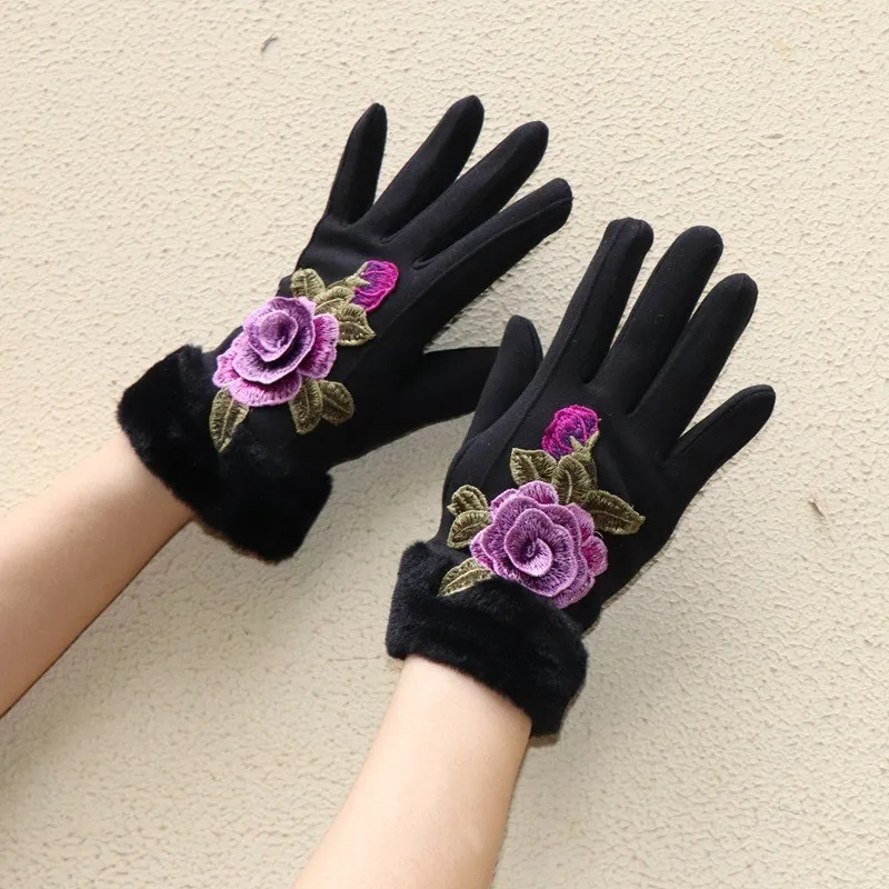 衣都精品- 新款雲南民族風刺繡保暖全指手套