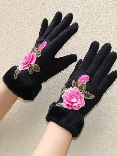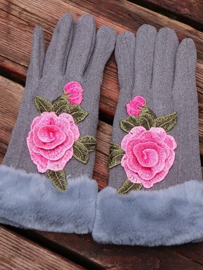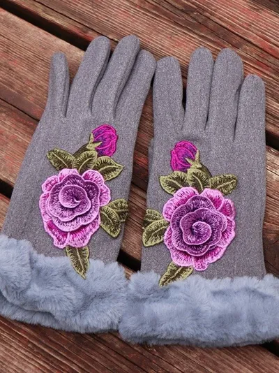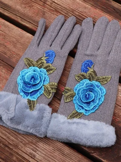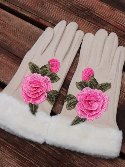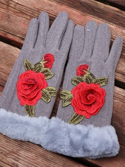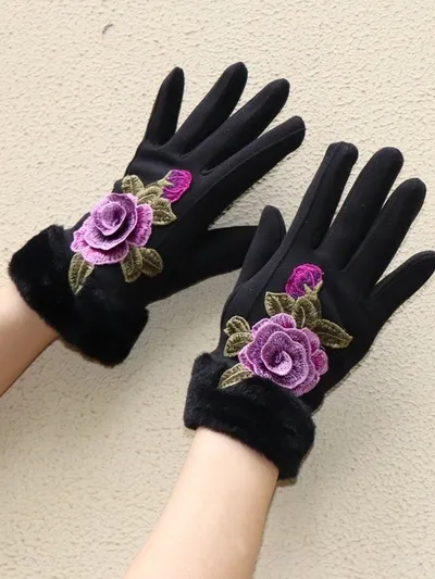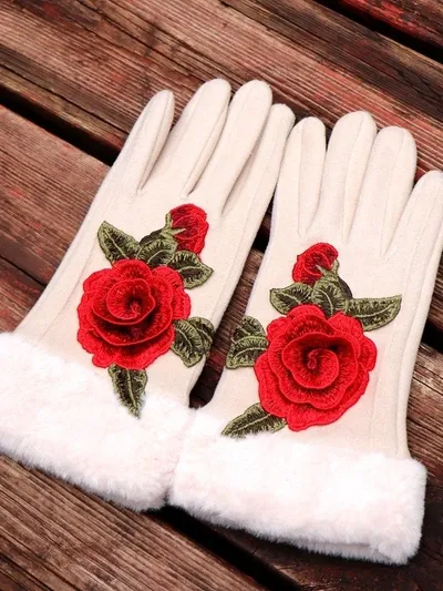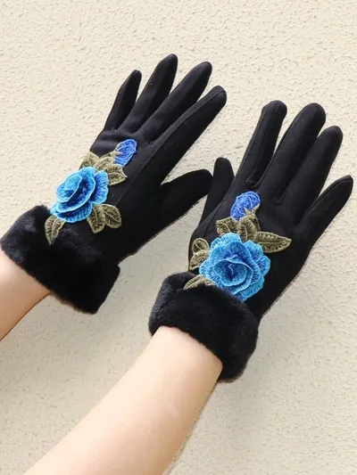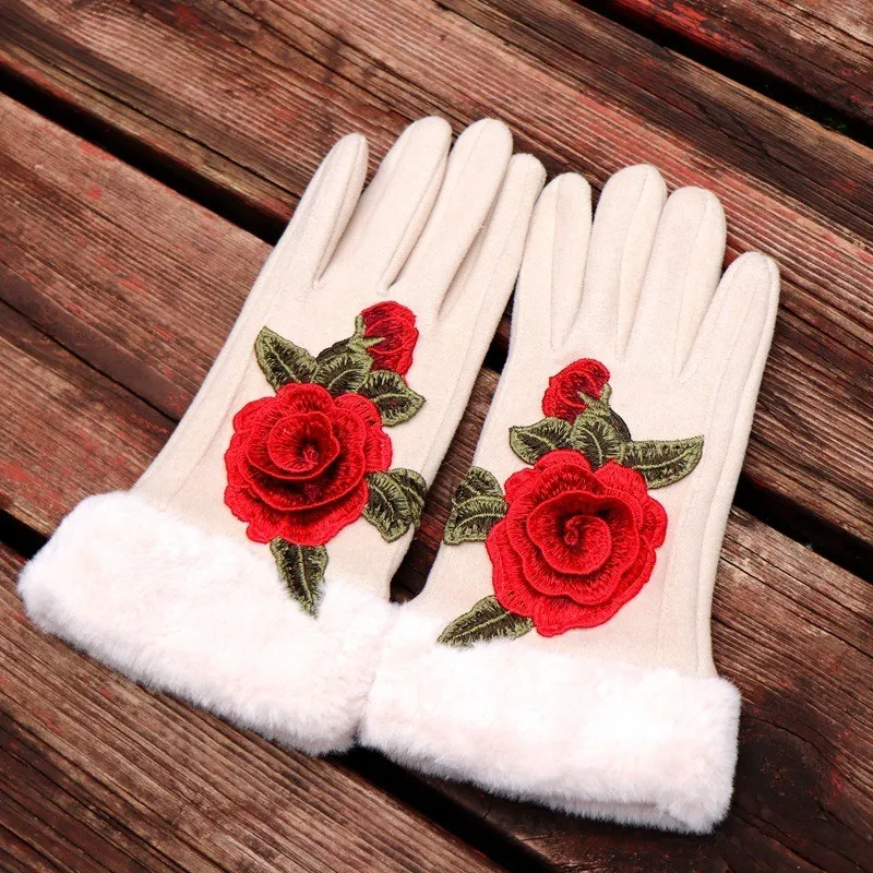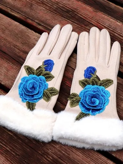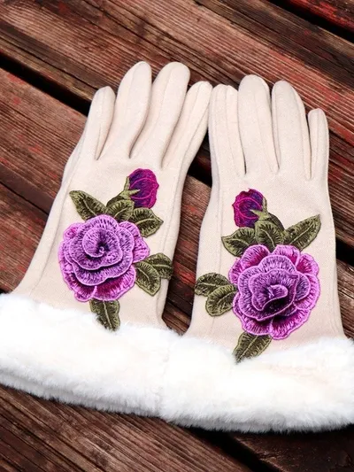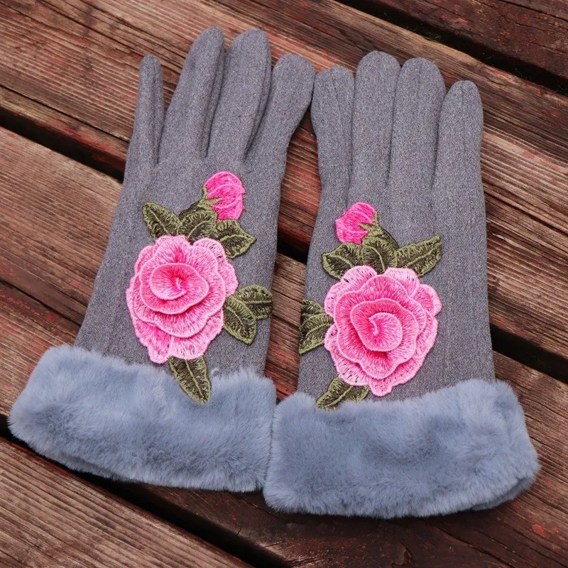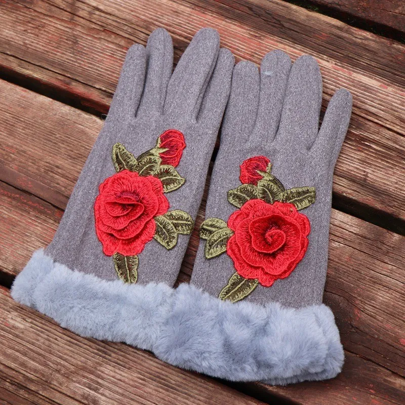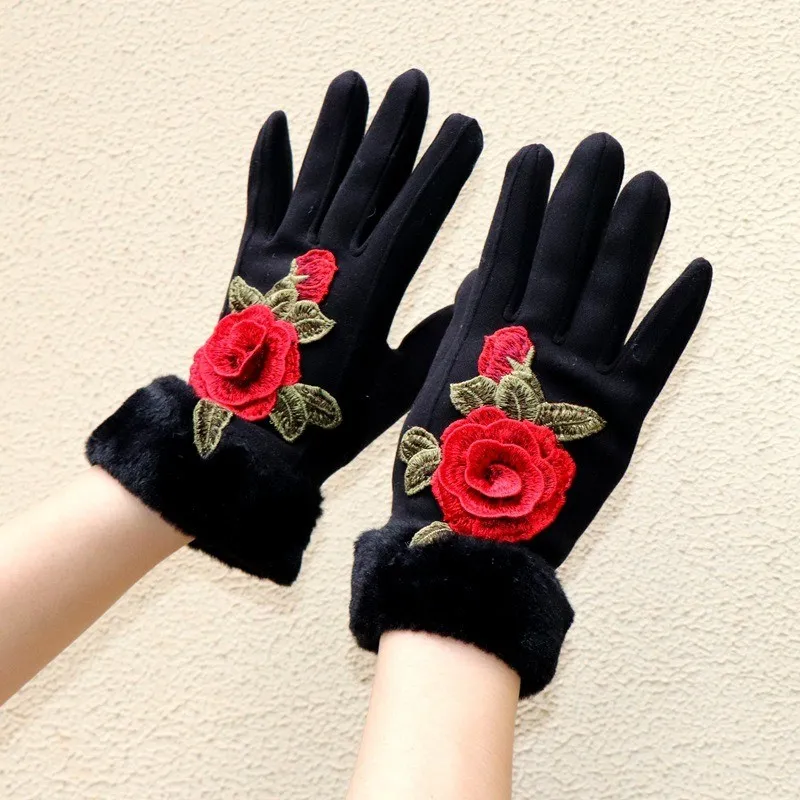 衣都精品- 新款雲南民族風刺繡保暖全指手套