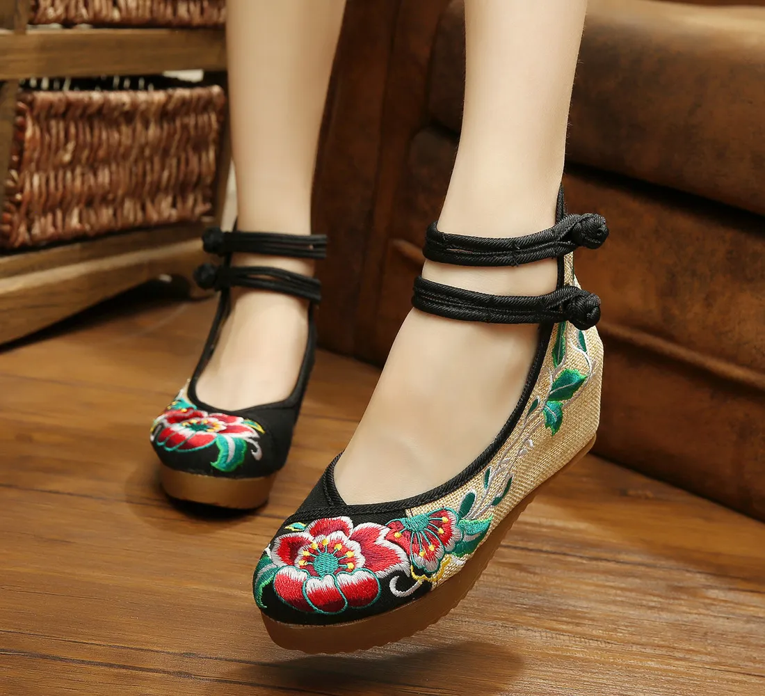 衣都精品- 2020春季新款民族風底內增高繡花布鞋