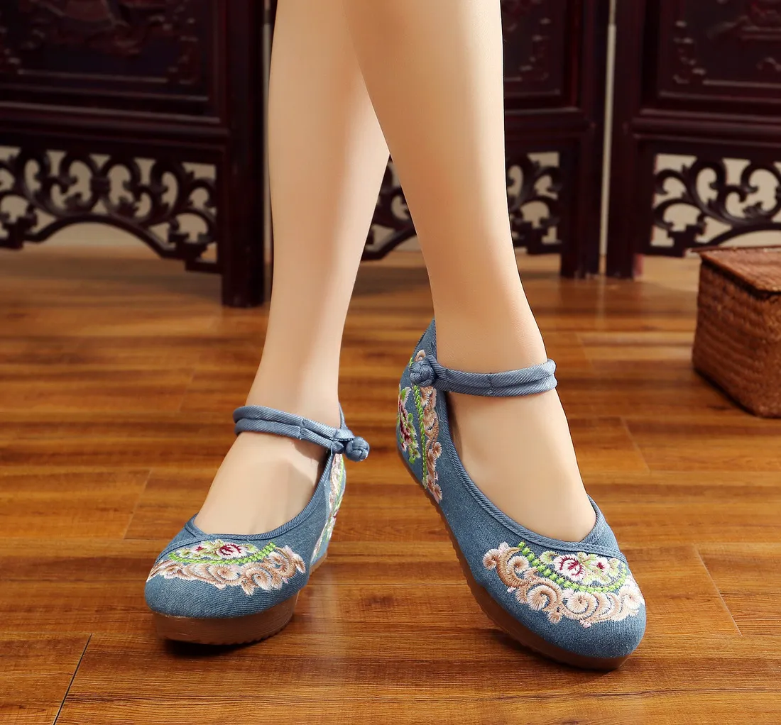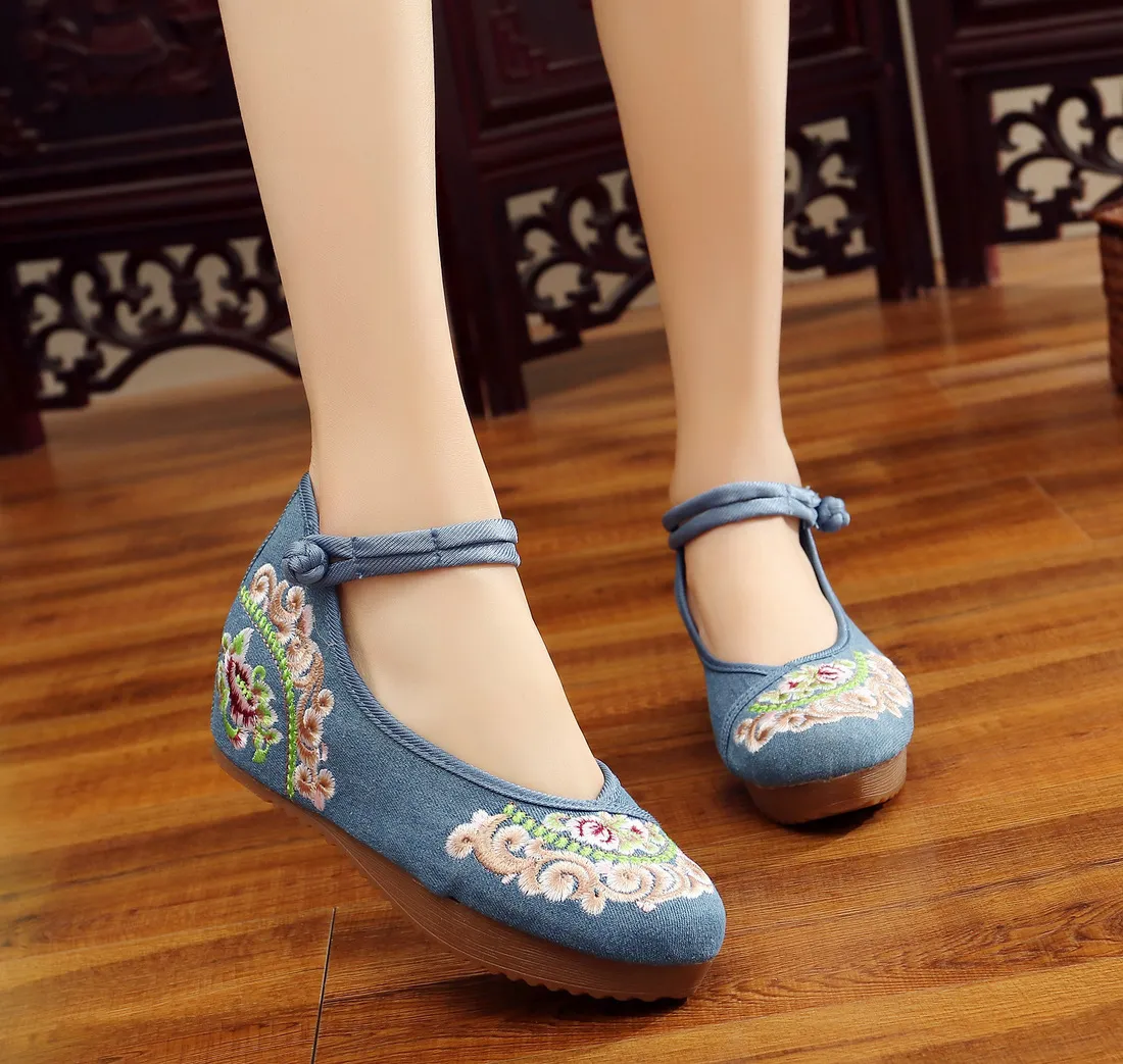 衣都精品- 2020春季新款民族風底內增高繡花布鞋