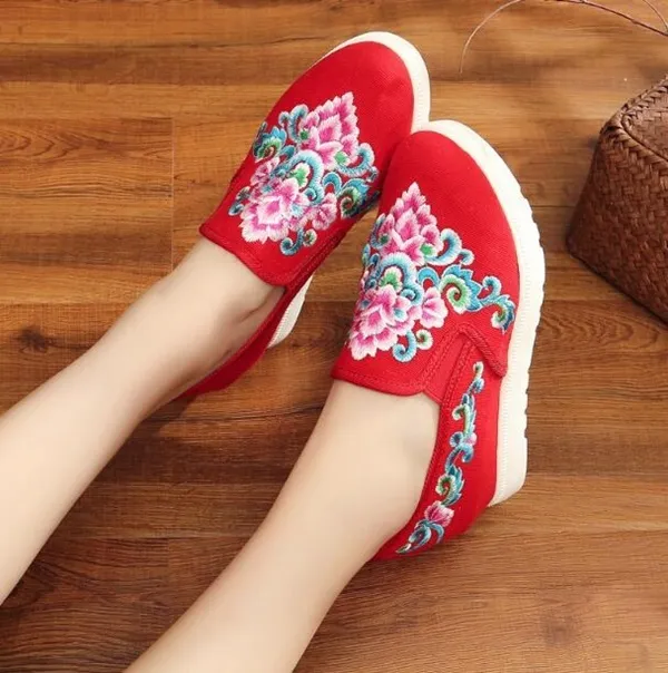 衣都精品-民族風內增高防滑文藝繡花休閒鞋
