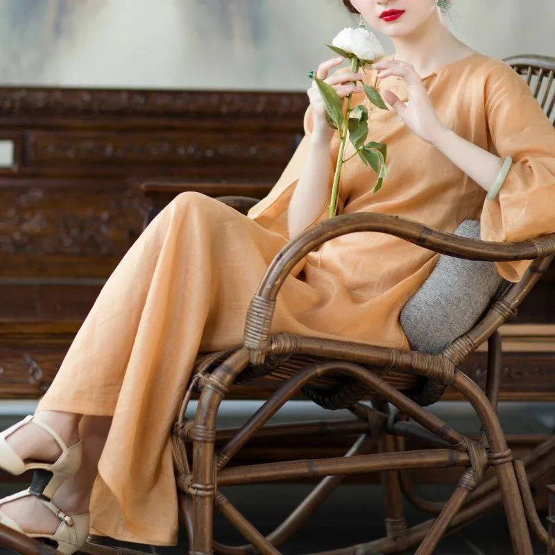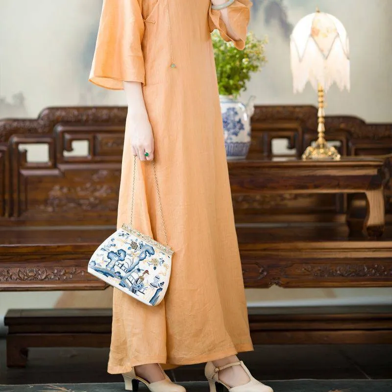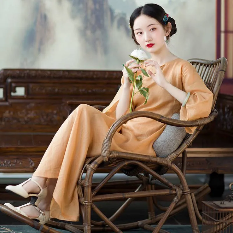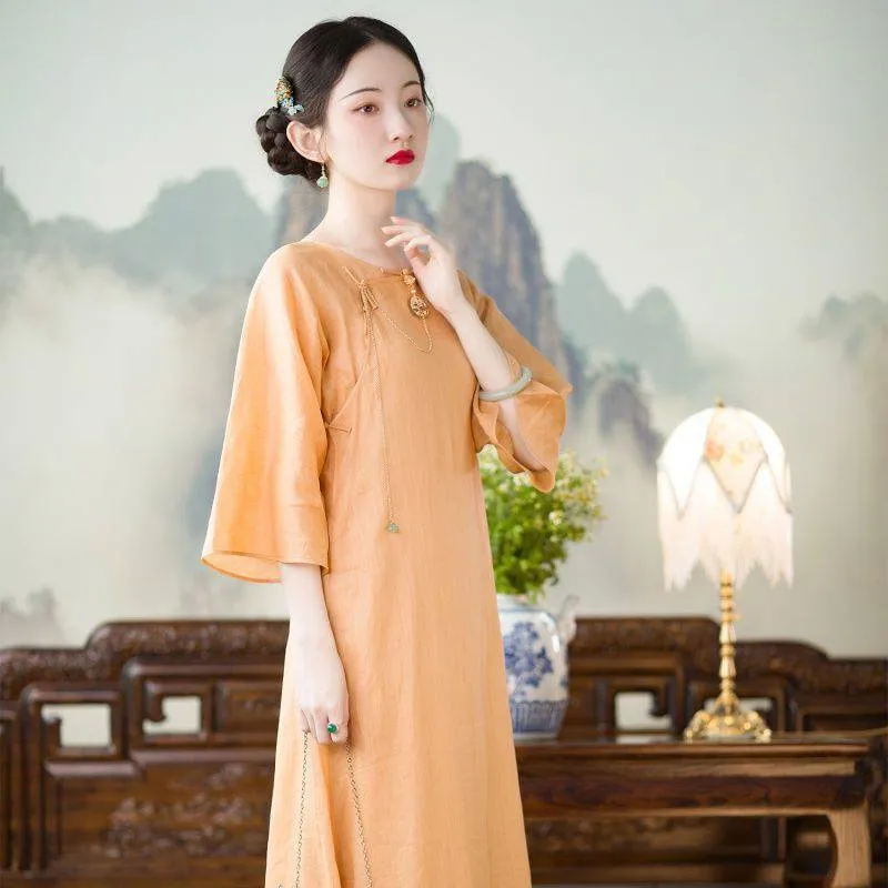 衣都精品- 2022春夏新款復古民國風無領寬鬆倒大袖旗袍