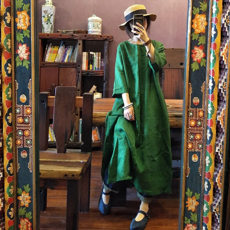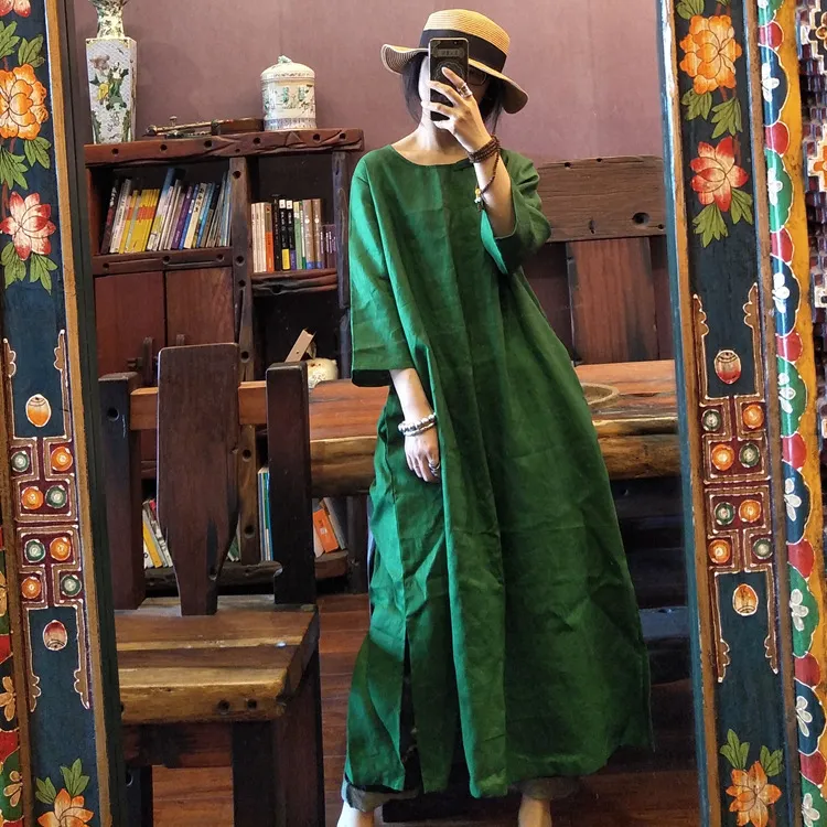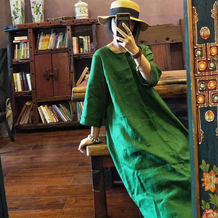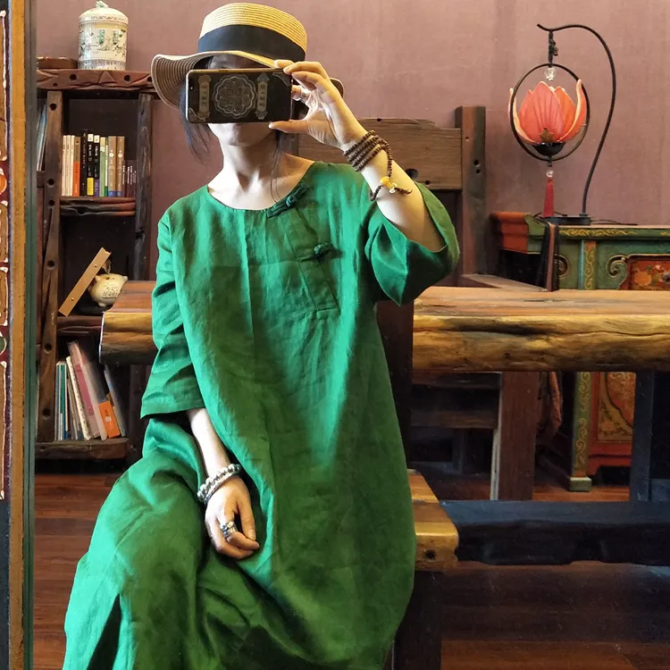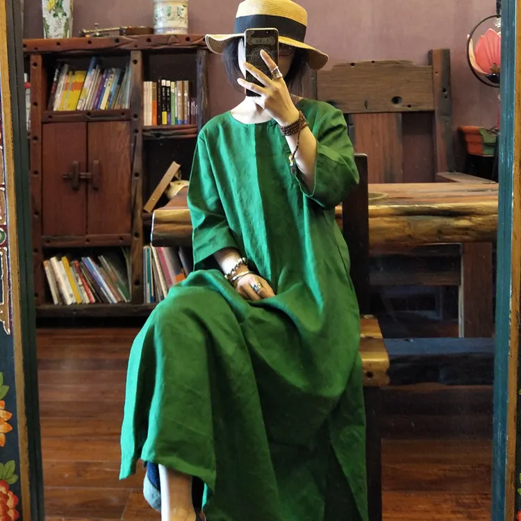 衣都精品- 2022春夏新款民族風水洗手工長袍連衣裙