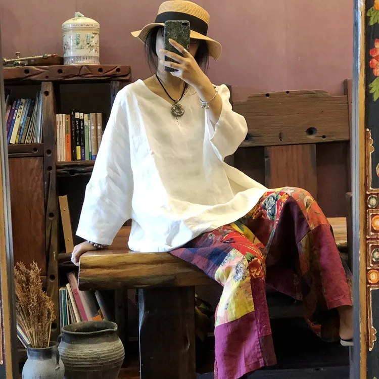 衣都精品- 2022春夏新款復古手工拼布直筒八分褲