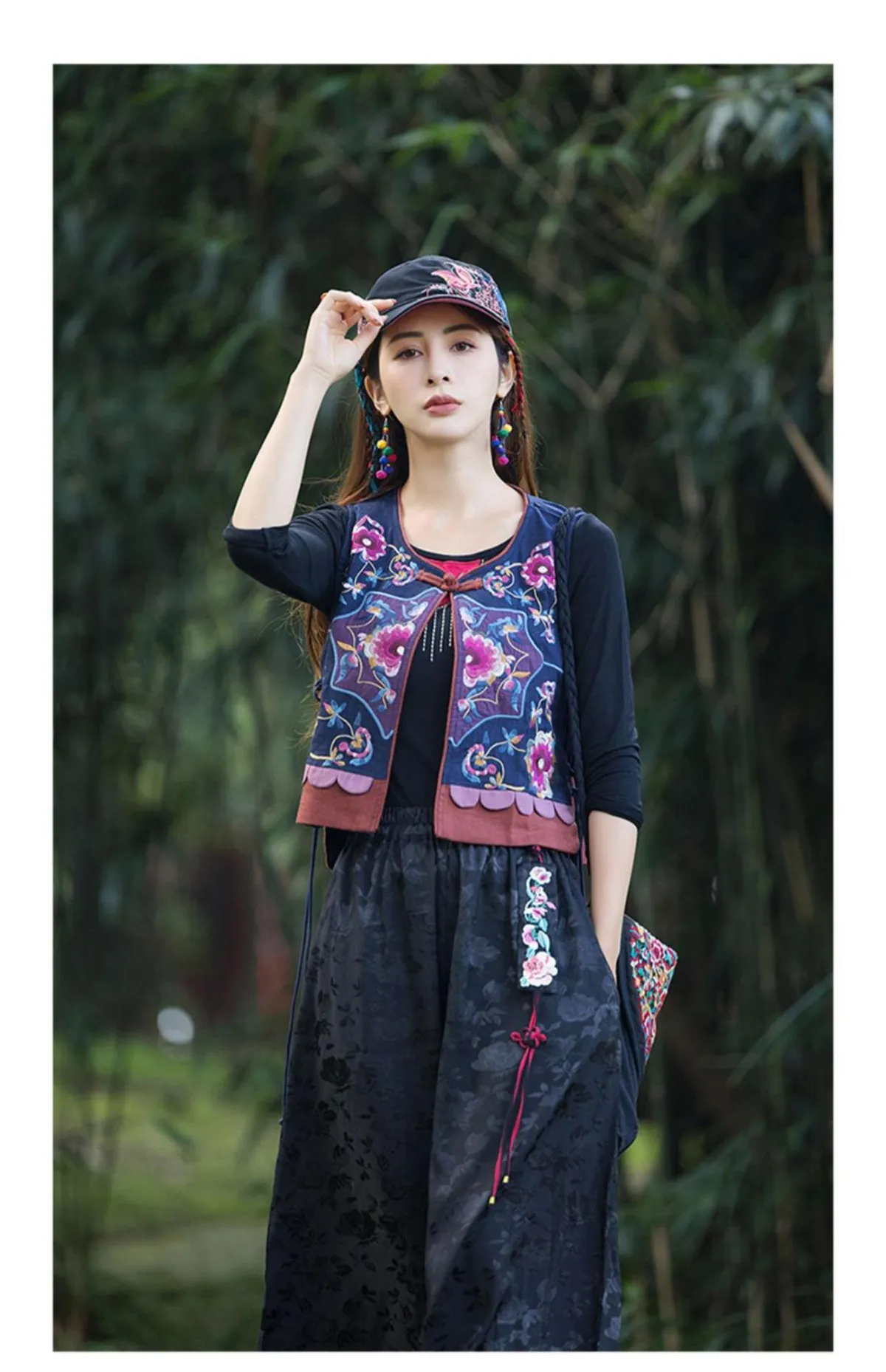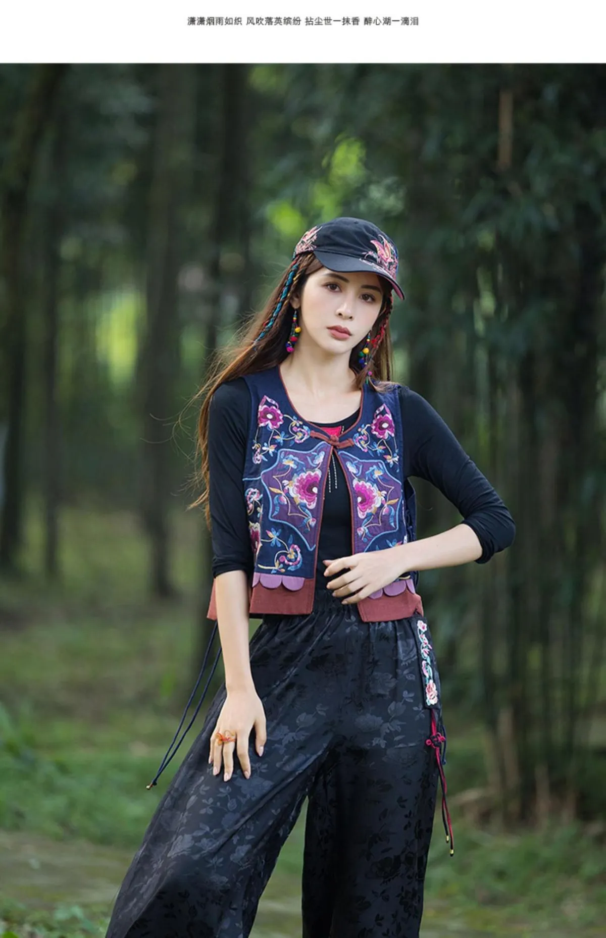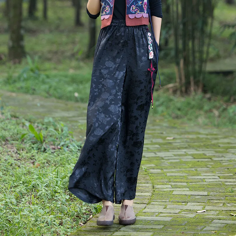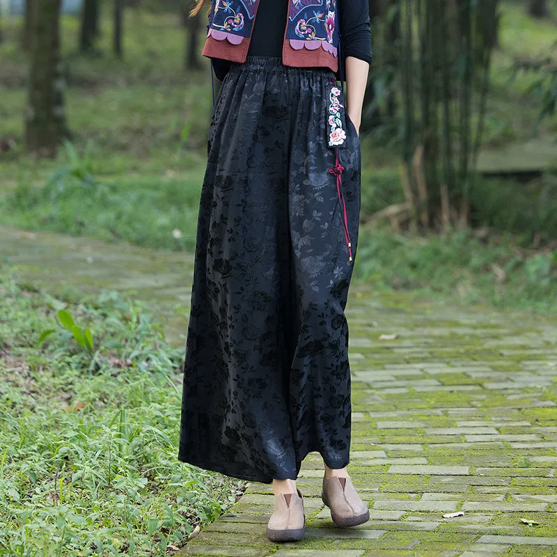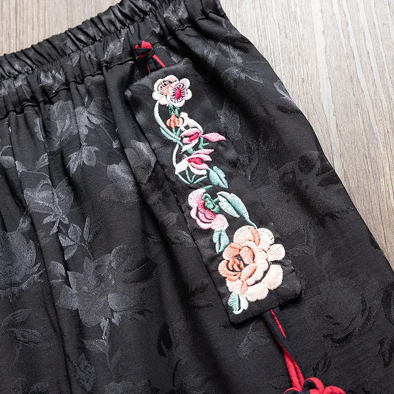 衣都精品- 2022春夏新款民族風刺繡吊墜提花闊腿褲