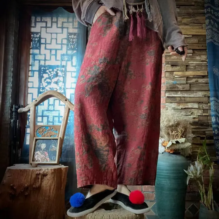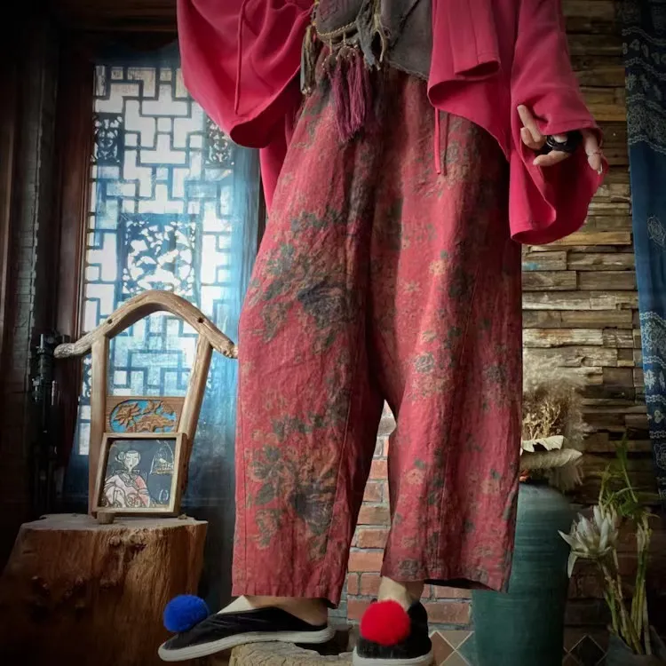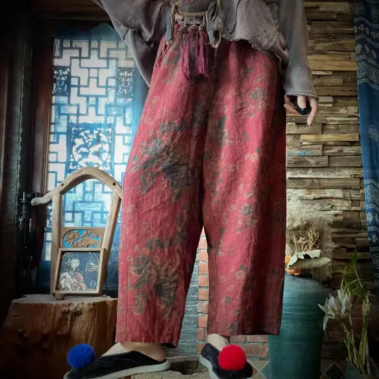 衣都精品- 2022冬季新款仿香雲紗印花直筒九分褲