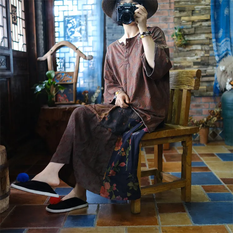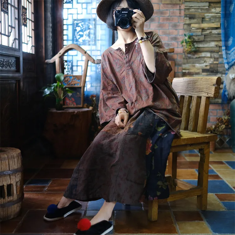 衣都精品- 2022冬季新款仿香雲紗印花直筒九分褲