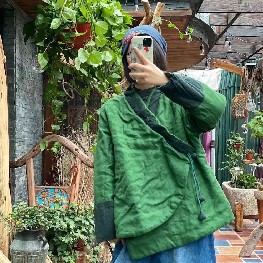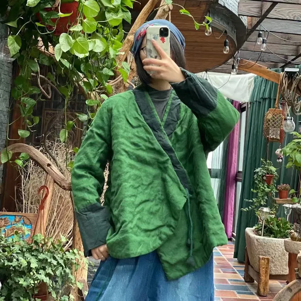 衣都精品- 2022冬季新款復古文藝斜襟簡約外套