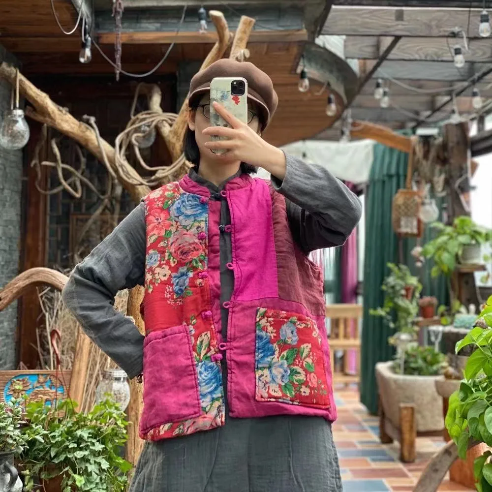 衣都精品- 2022冬季新款乞丐風水洗拼布坎肩外套