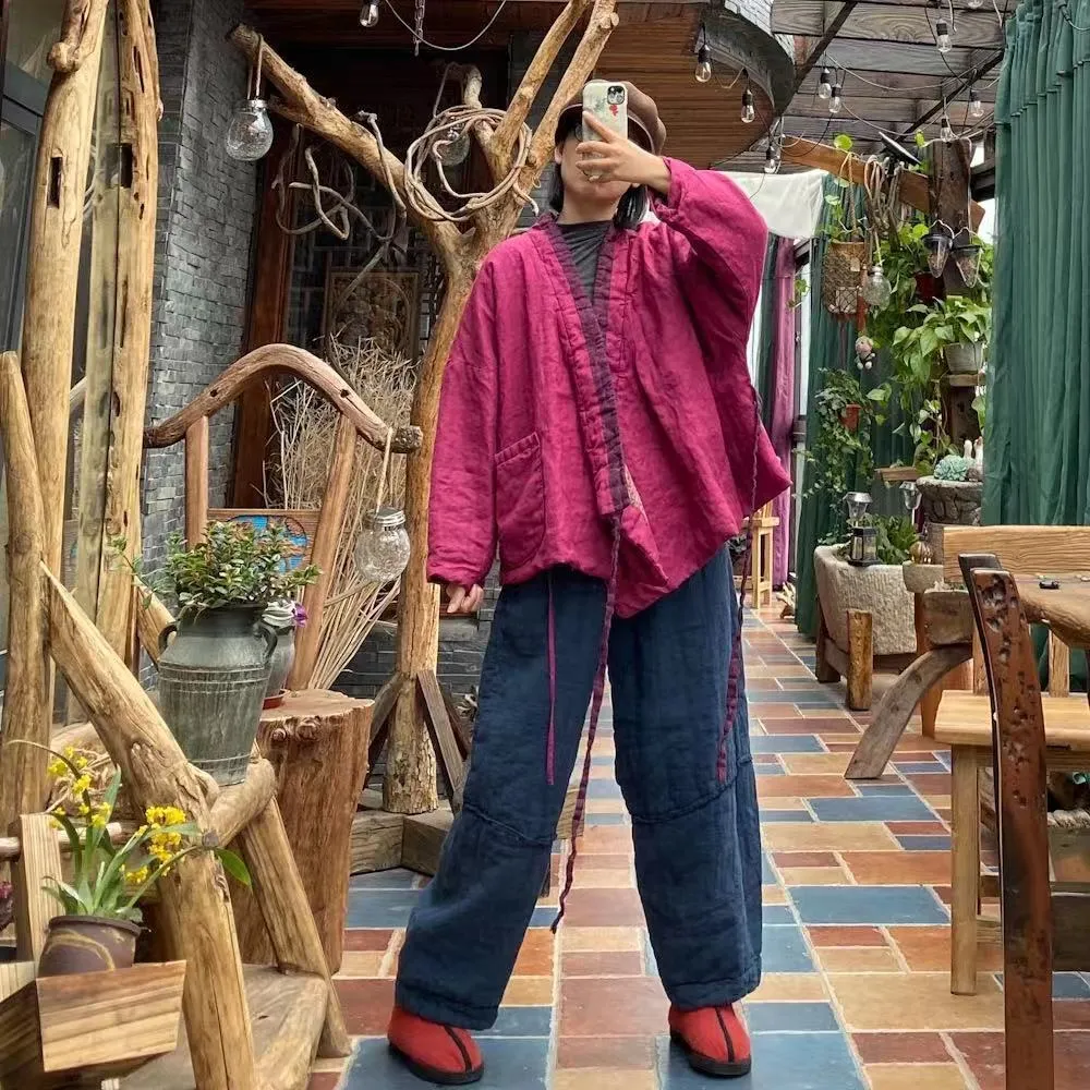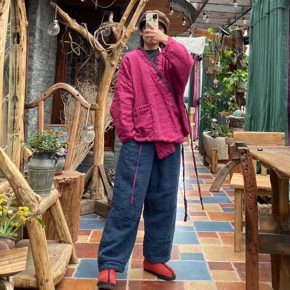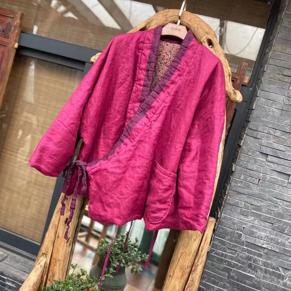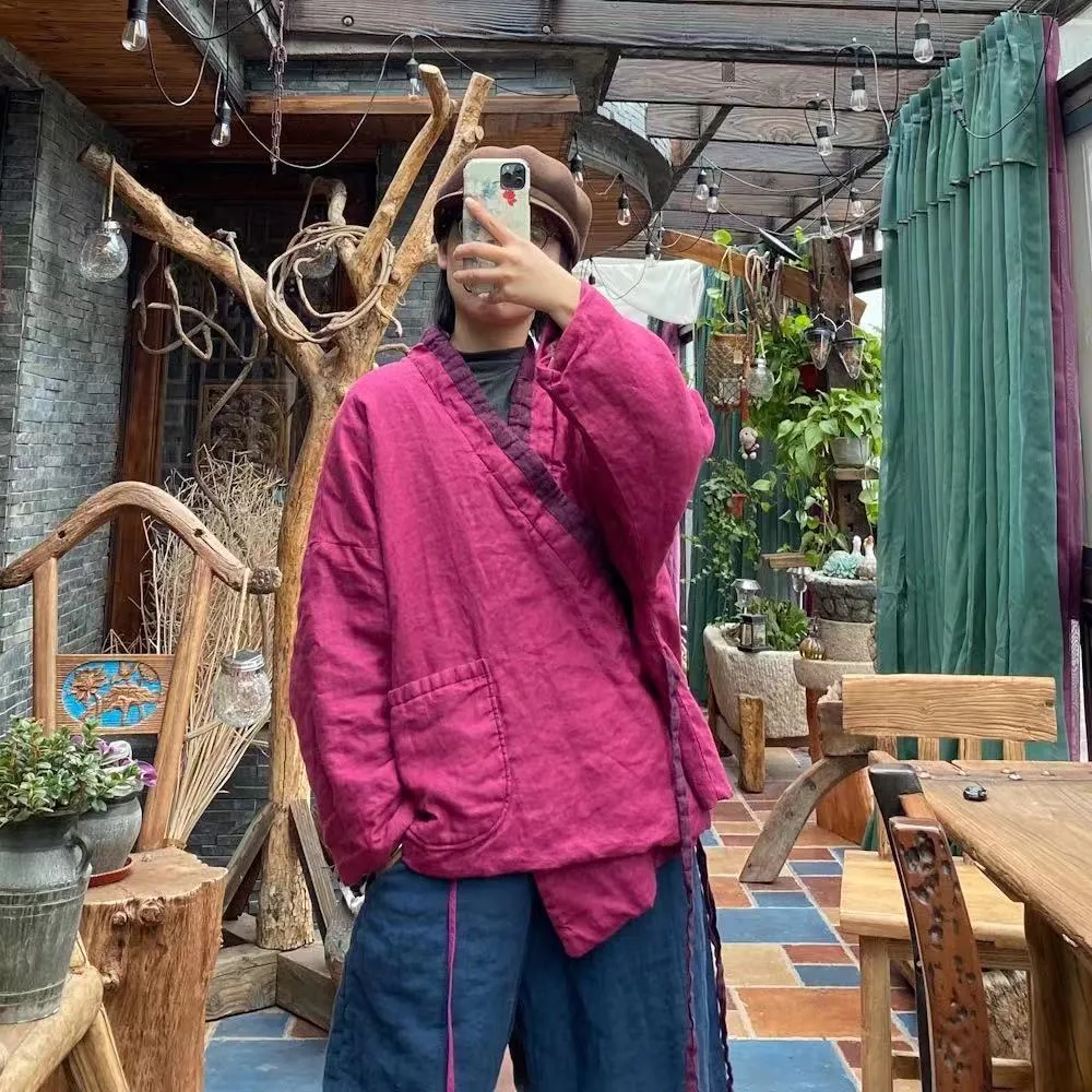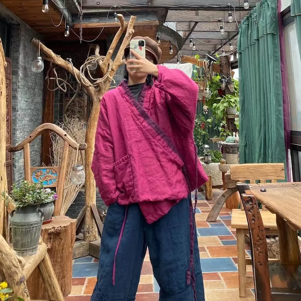 衣都精品- 2022冬季新款復古文藝斜襟繫帶外套