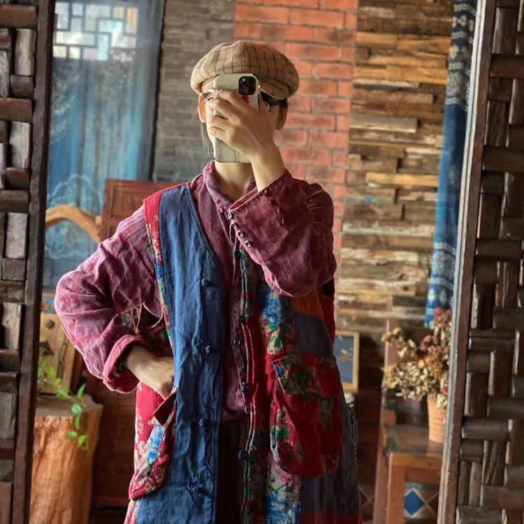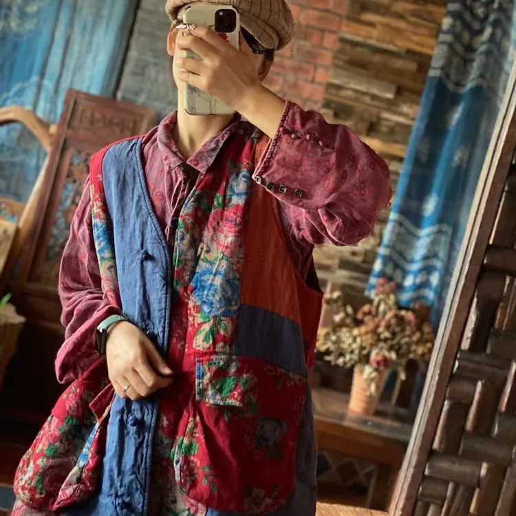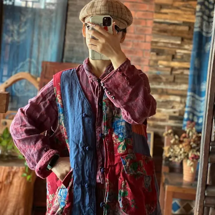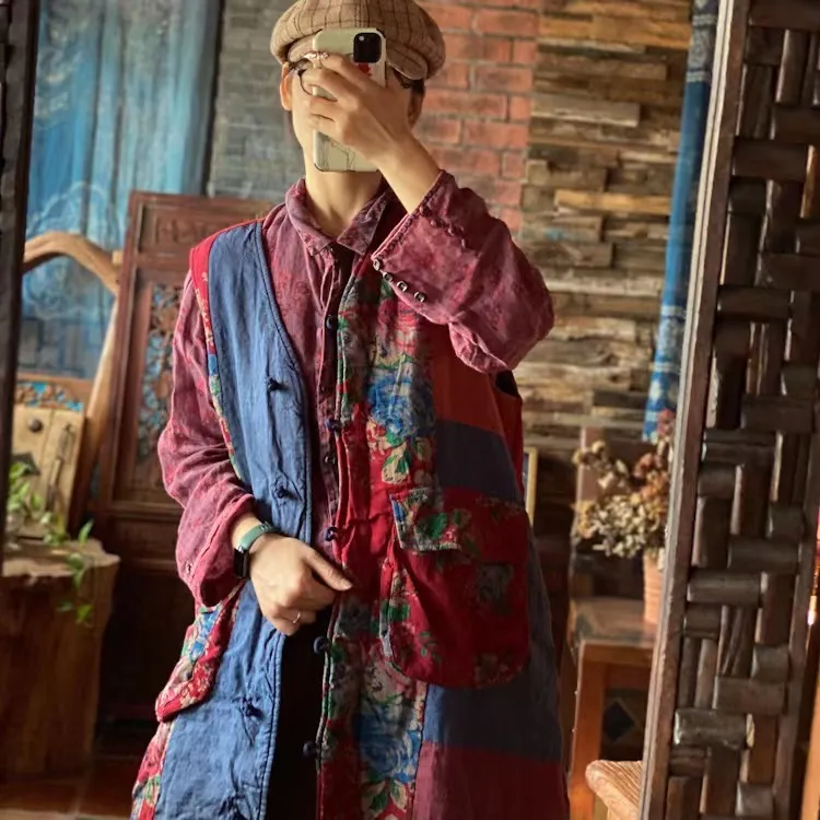 衣都精品- 2022冬季新款復古文藝拼布寬鬆坎肩外套