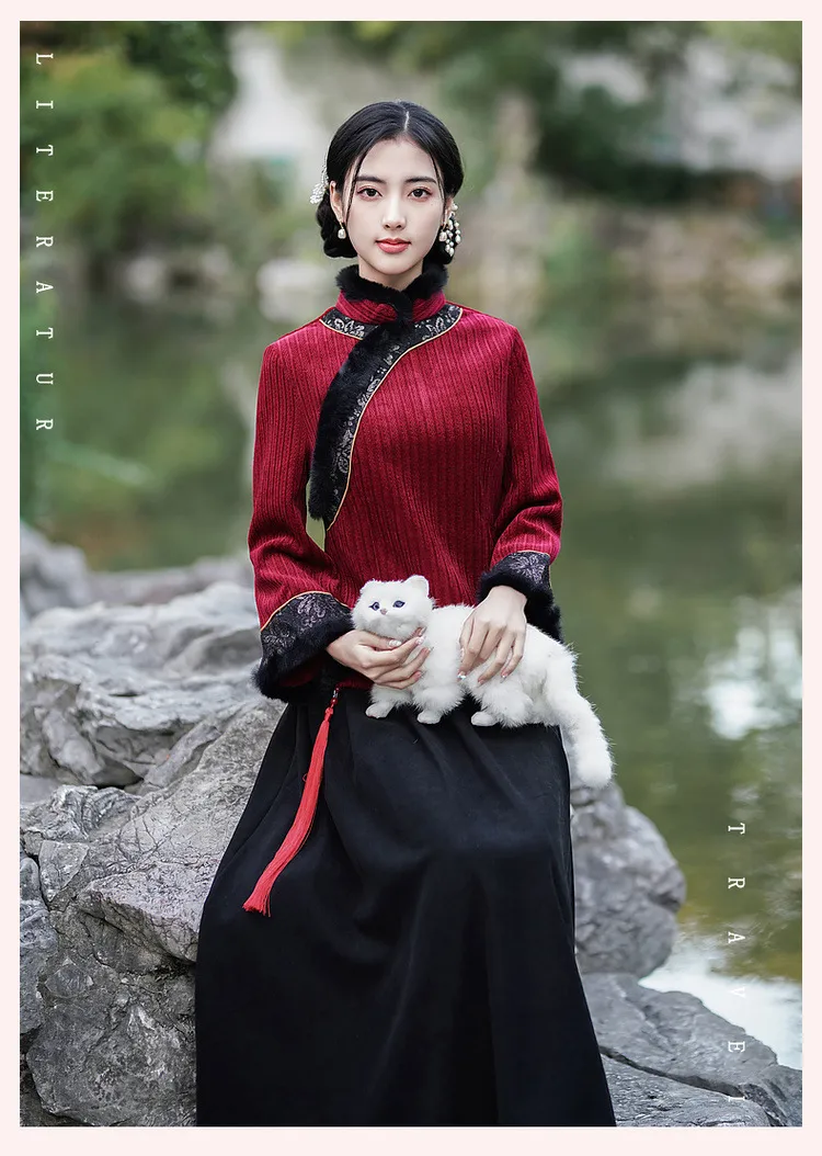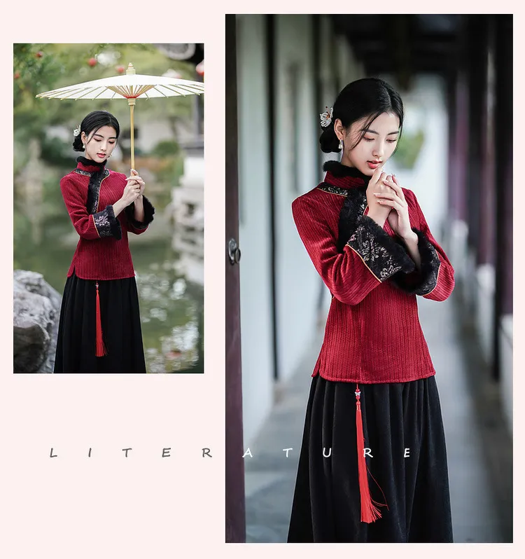 衣都精品- 2022冬季新款中國風大碼保暖復古立領外套