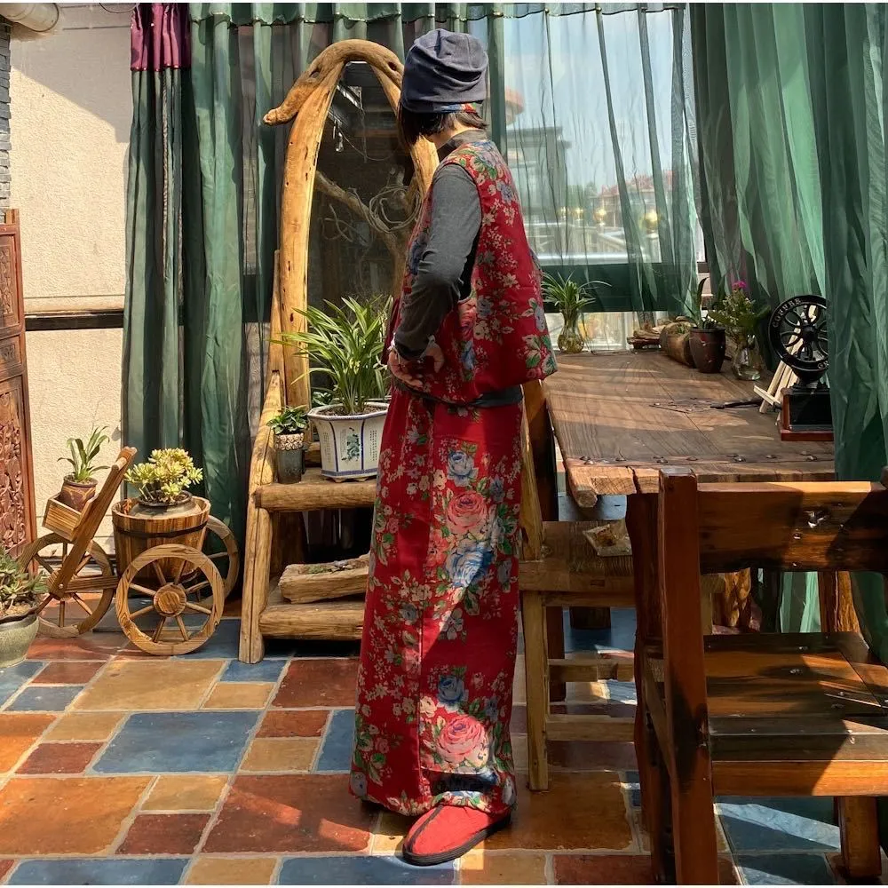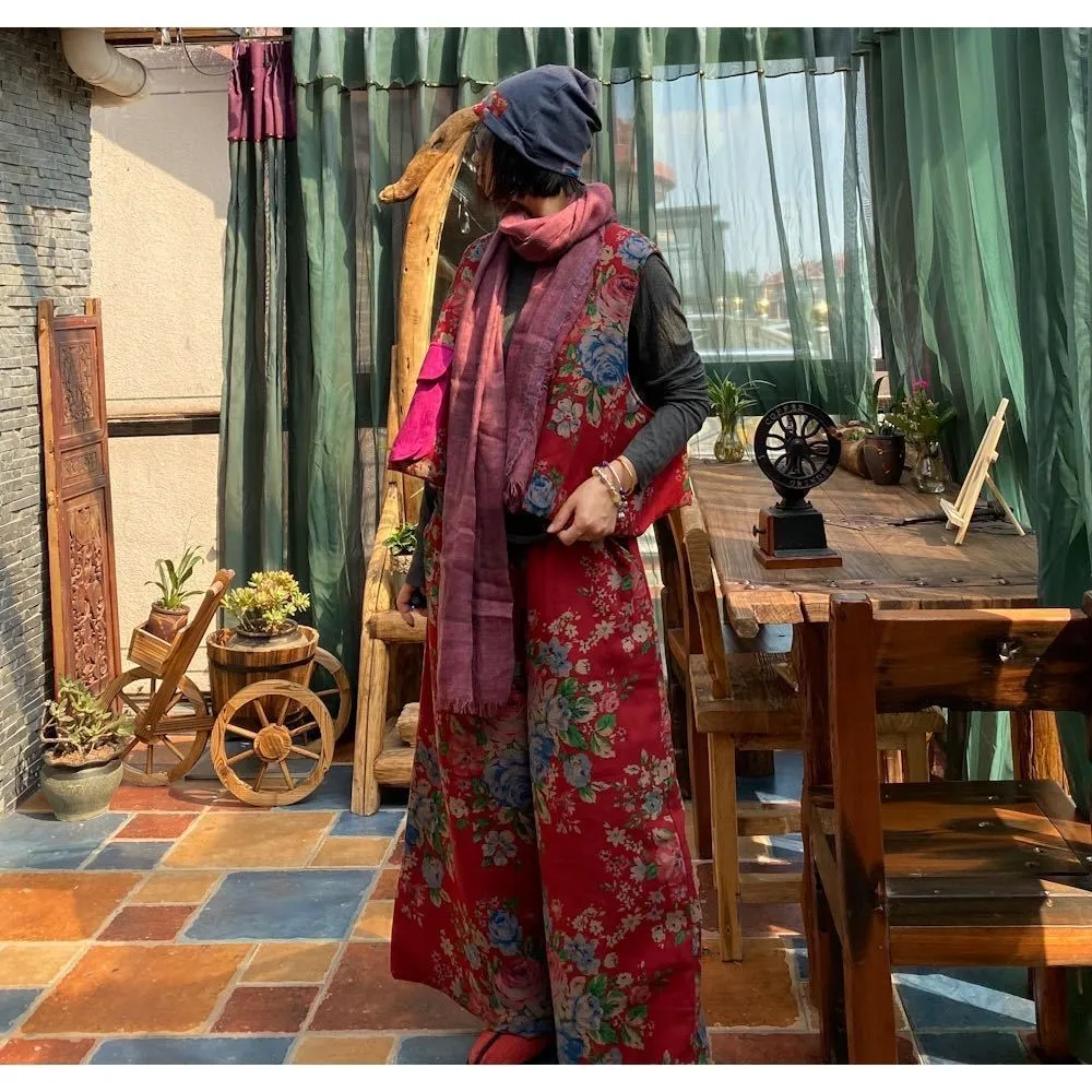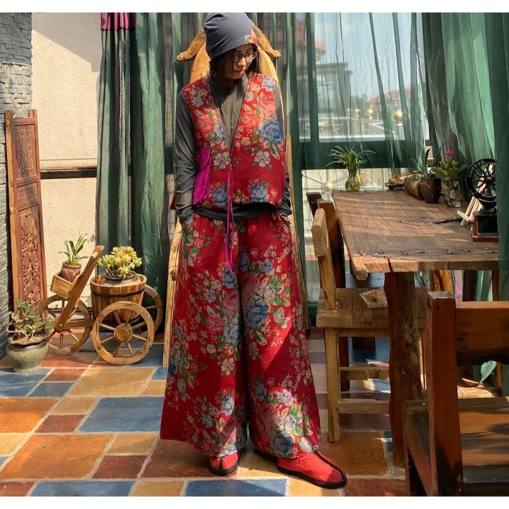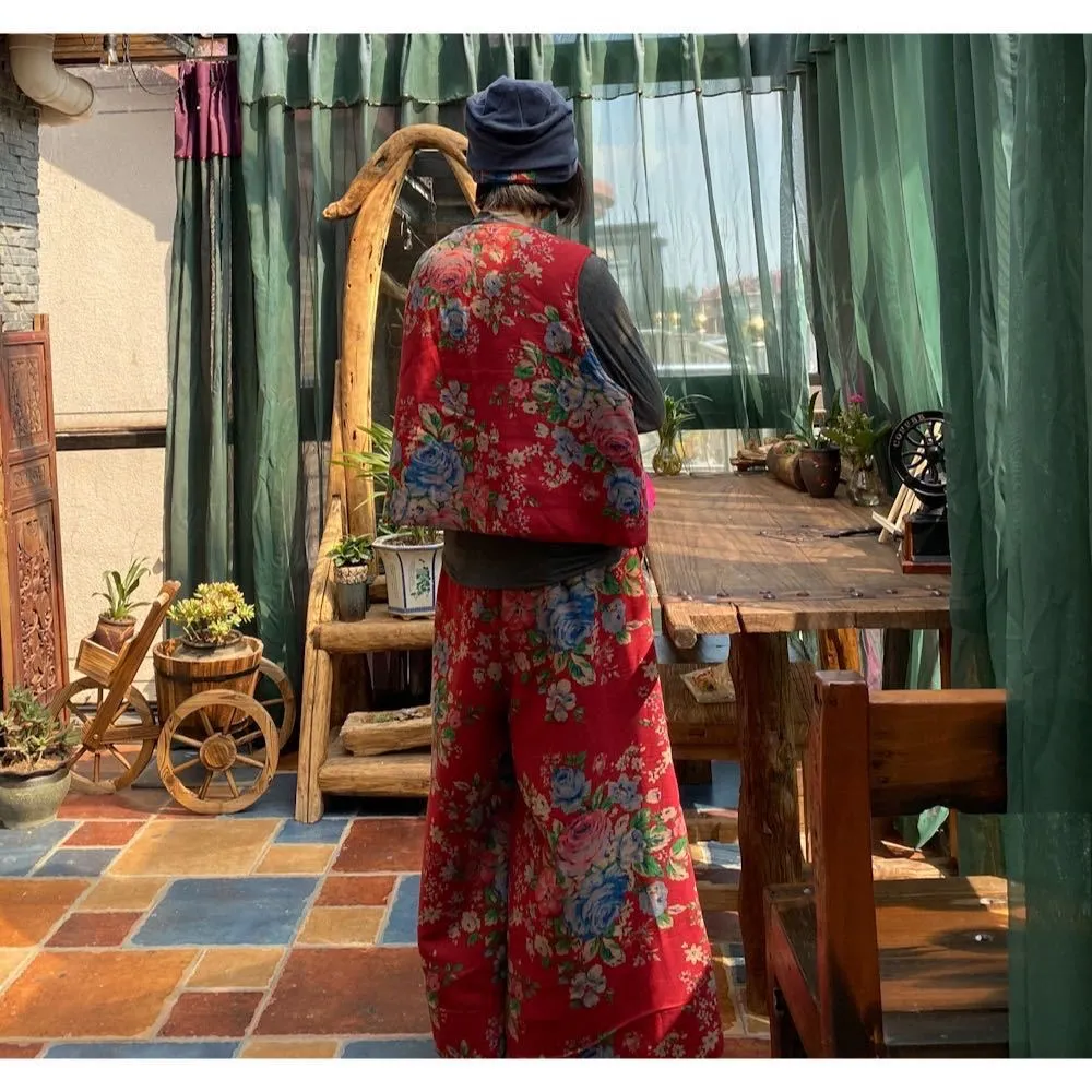 衣都精品- 2022冬季新款復古大花文藝寬鬆鬆緊腰闊腿褲