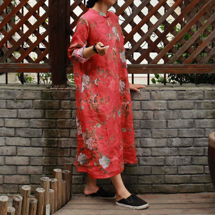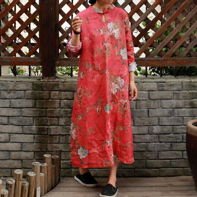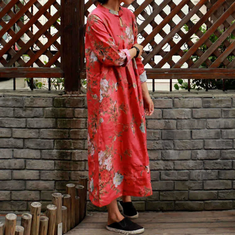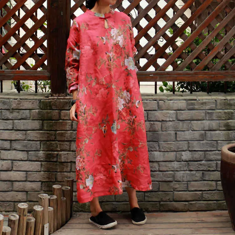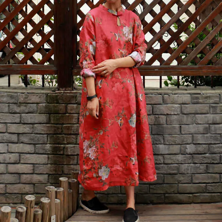衣都精品- 2022冬季新款復古繁花立領盤扣長袖連衣裙