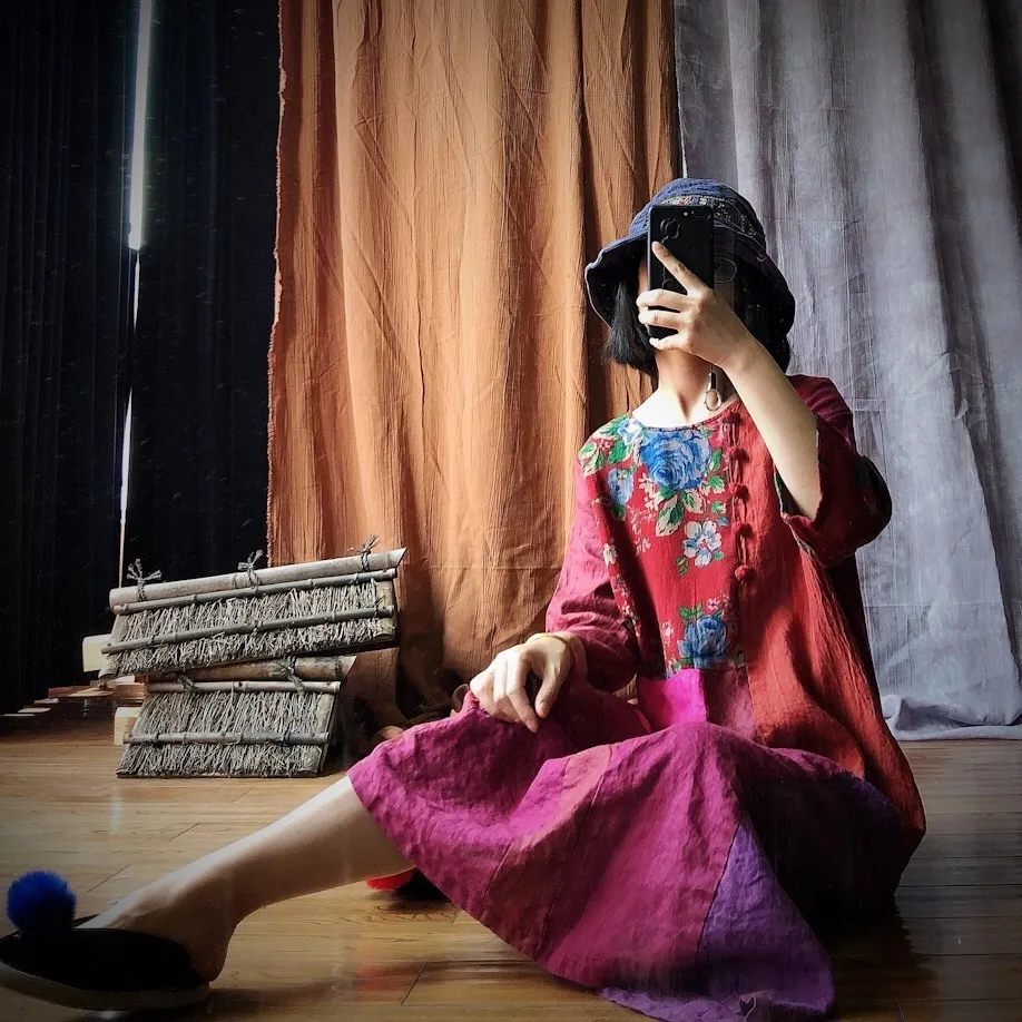 衣都精品- 2022冬季新款復古個性拼布寬鬆顯瘦連衣裙