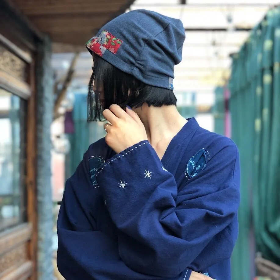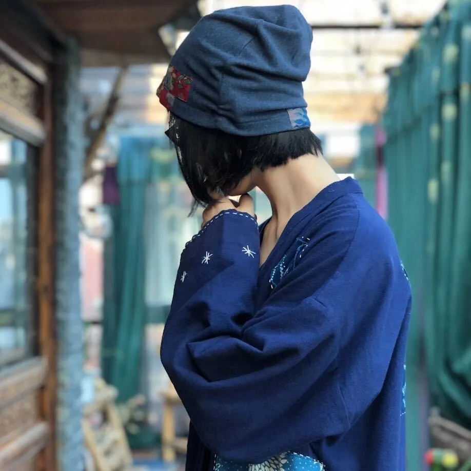 衣都精品- 2022冬季新款復古百搭針織文藝棉麻貼布帽
