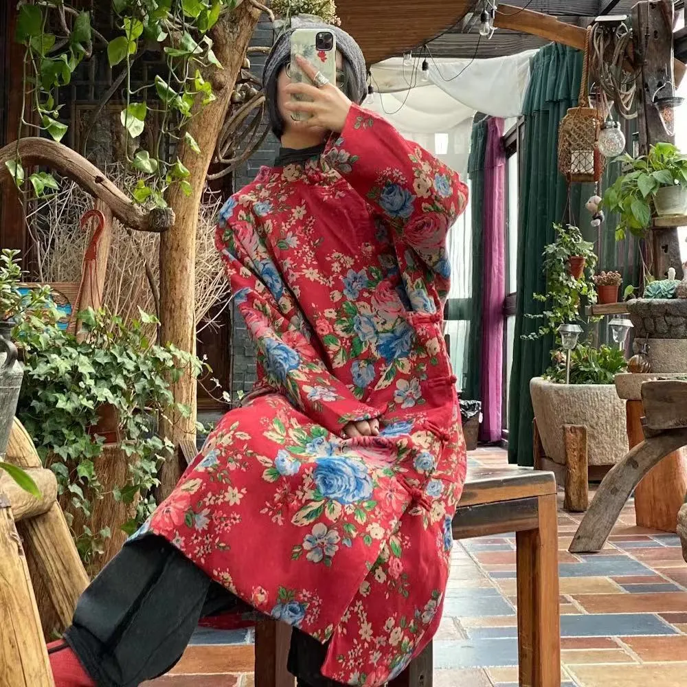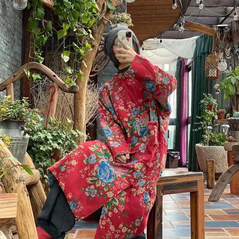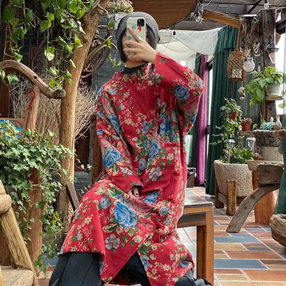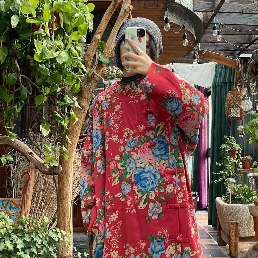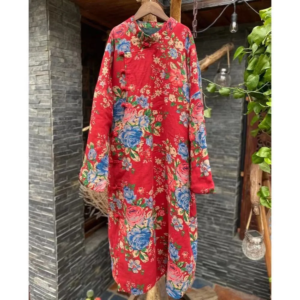 衣都精品- 2022冬季新款復古繁花立領盤扣長袖連衣裙