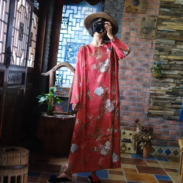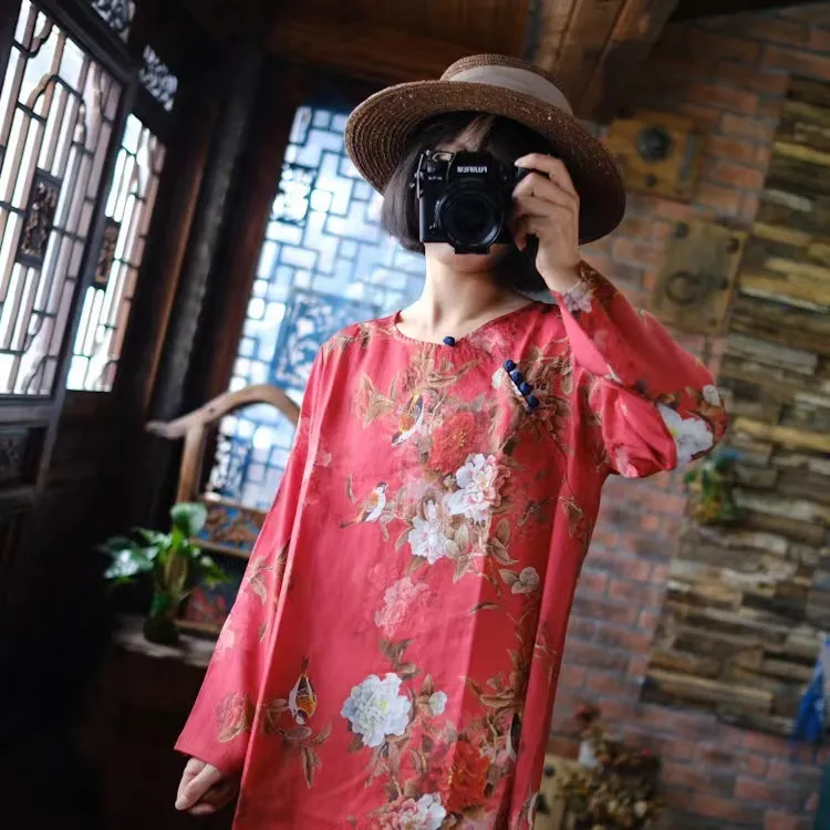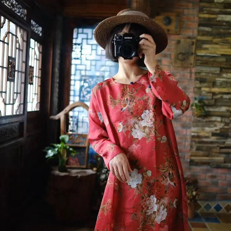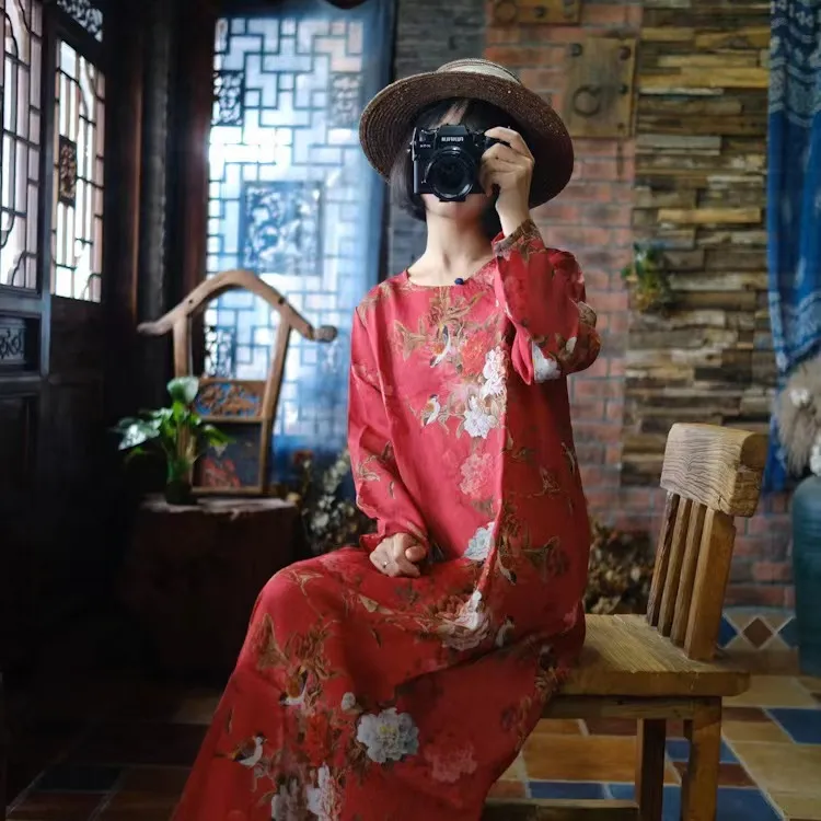 衣都精品- 2022冬季新款復古文藝仿香雲紗印花連衣裙