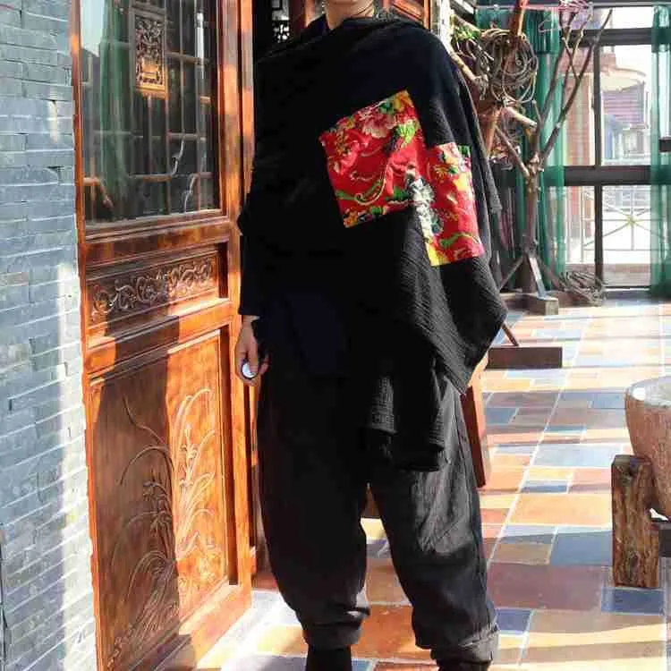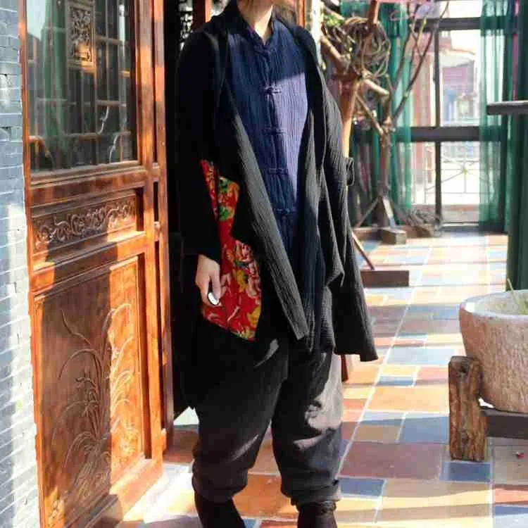 衣都精品- 2022冬季新款復古百搭針織文藝棉麻貼布帽