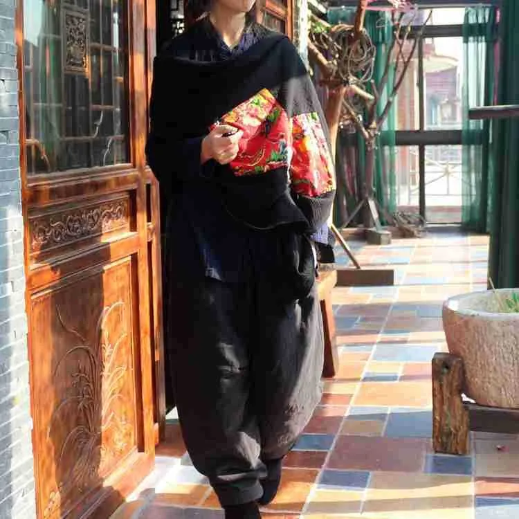 衣都精品- 2022冬季新款純棉肌理皺貼老花布大圍巾