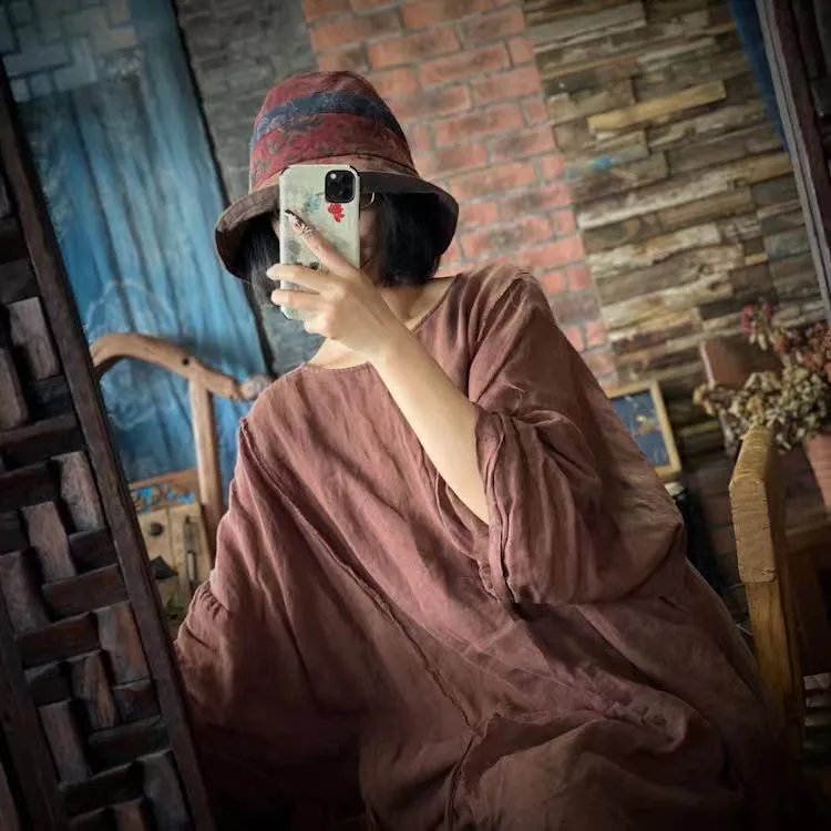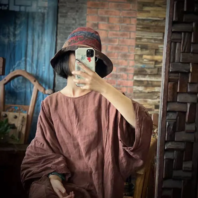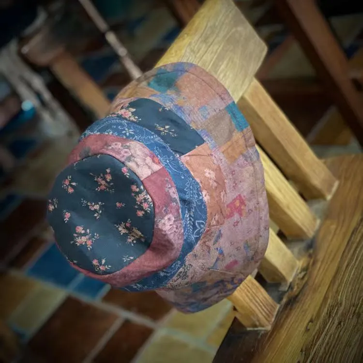 衣都精品- 2022冬季新款復古文藝仿香雲紗印花拼布帽