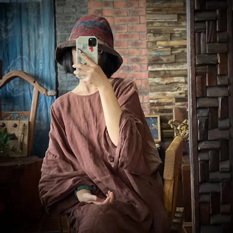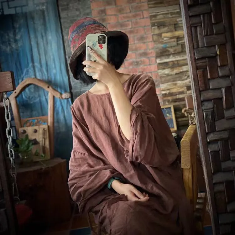 衣都精品- 2022冬季新款復古文藝仿香雲紗印花連衣裙