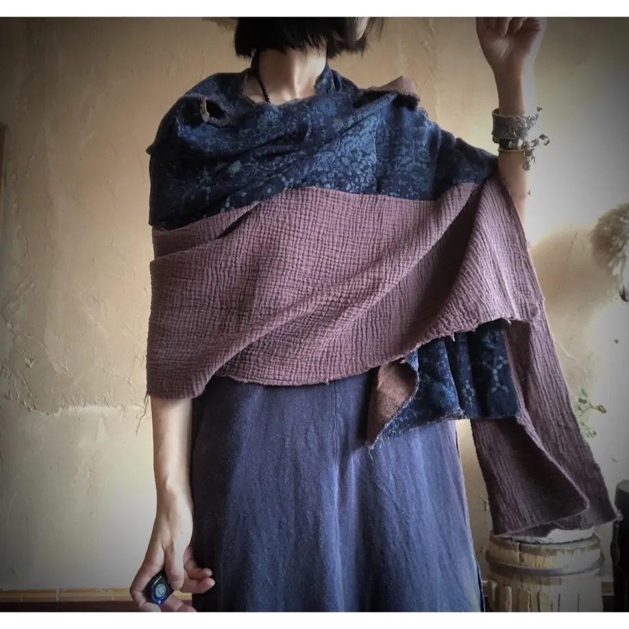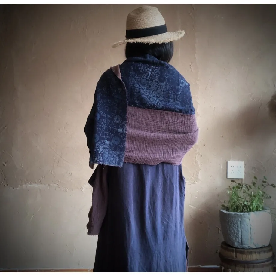 衣都精品- 2022冬季新款民族風肌理棉拼布毛邊圍巾