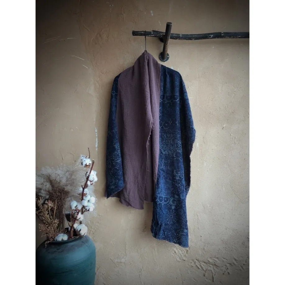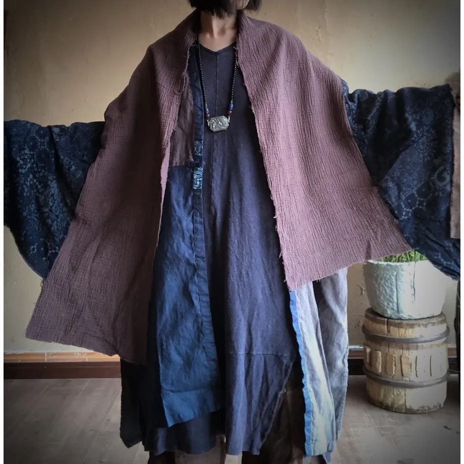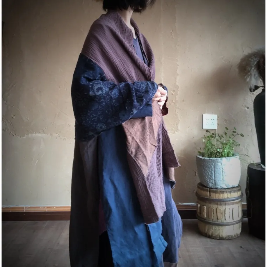 衣都精品- 2022冬季新款復古文藝仿香雲紗印花拼布帽