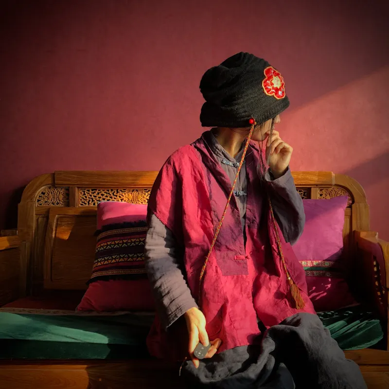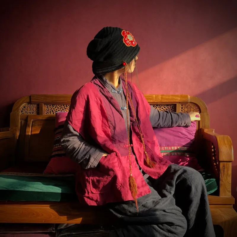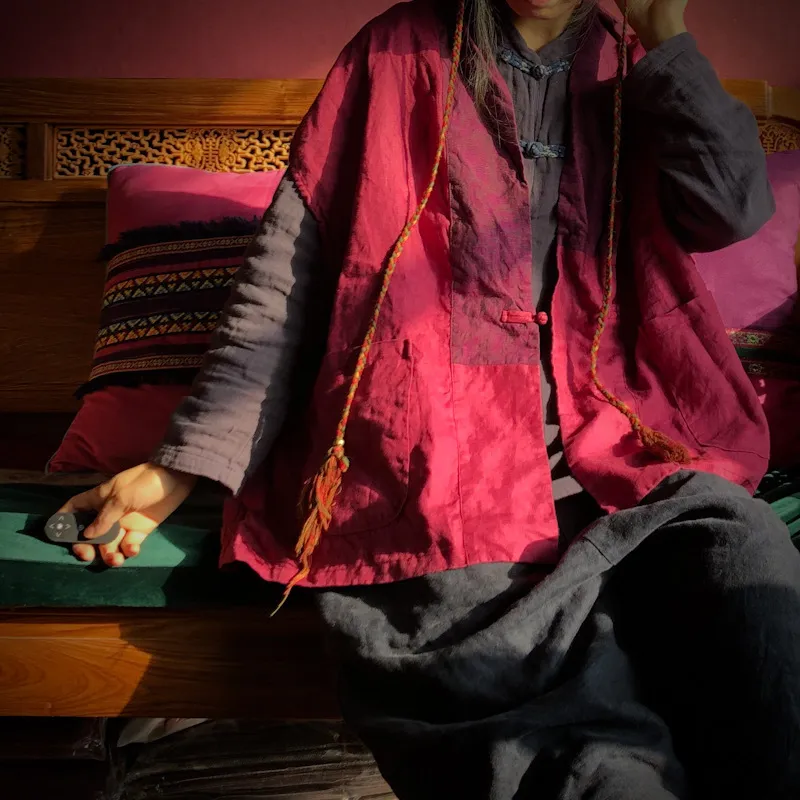 衣都精品- 2023新款純亞麻文藝百搭撞色寬鬆外套