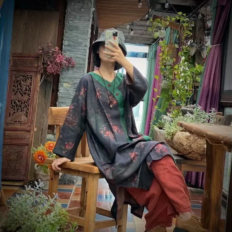 衣都精品- 2023新款純亞麻文藝百搭撞色寬鬆外套