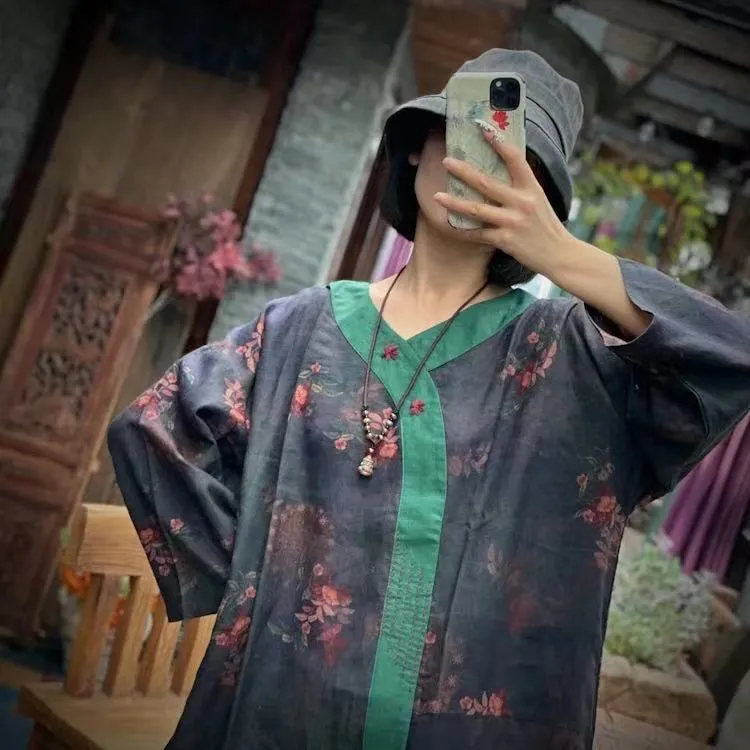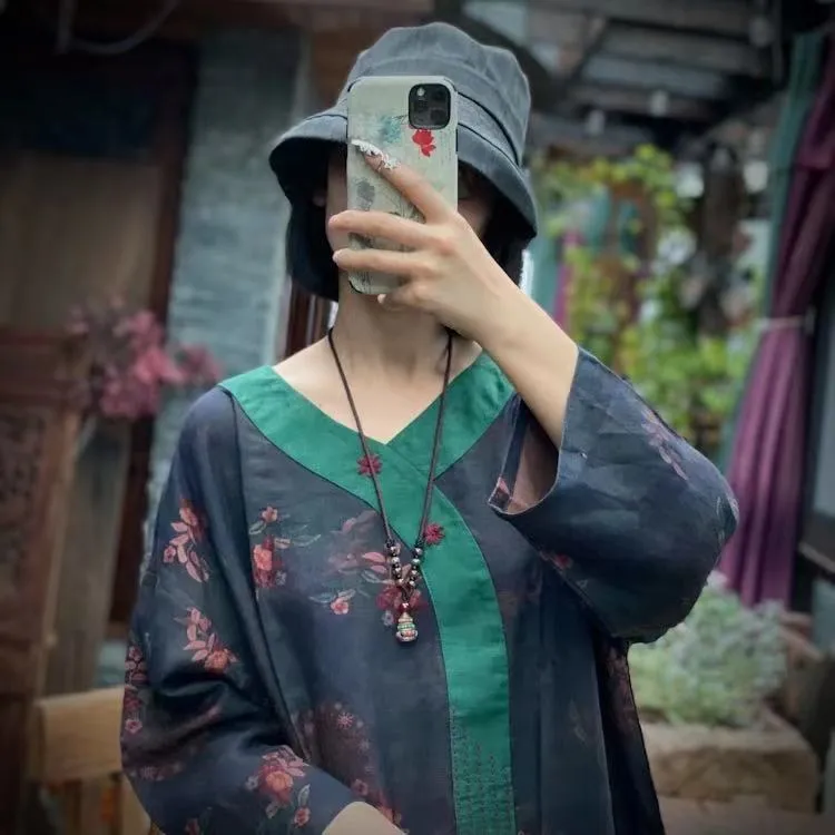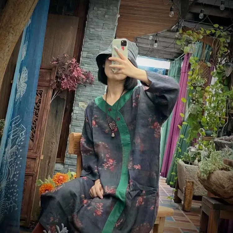 衣都精品- 2023新款復古仿香雲紗印花連衣裙