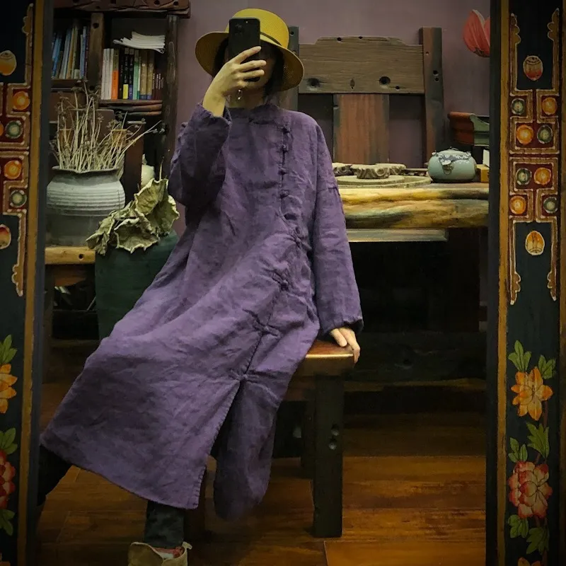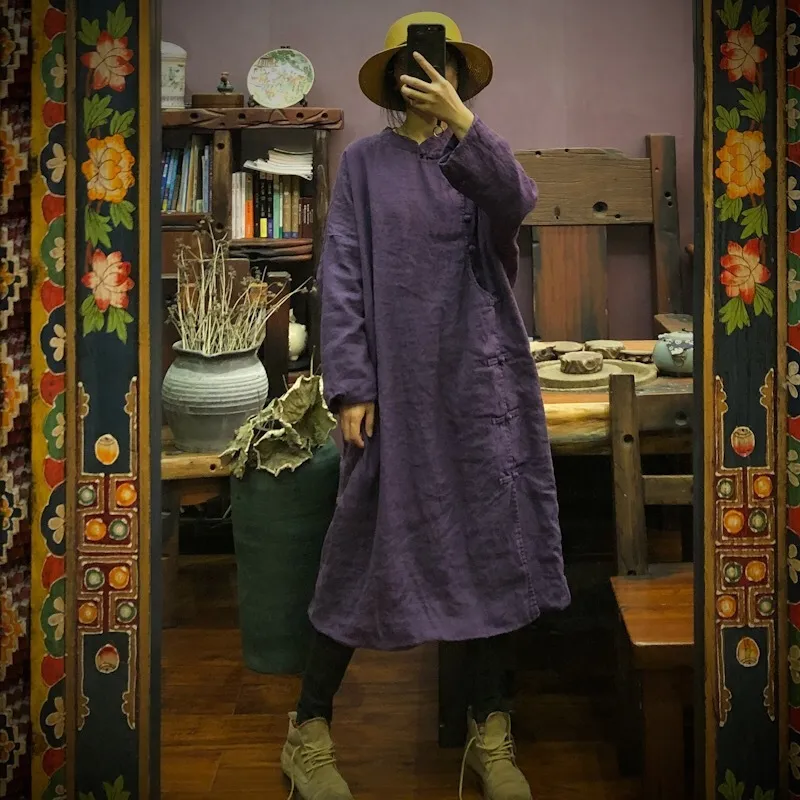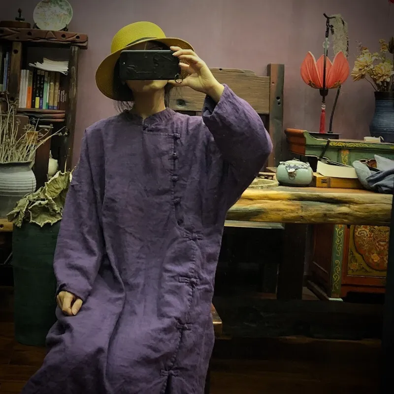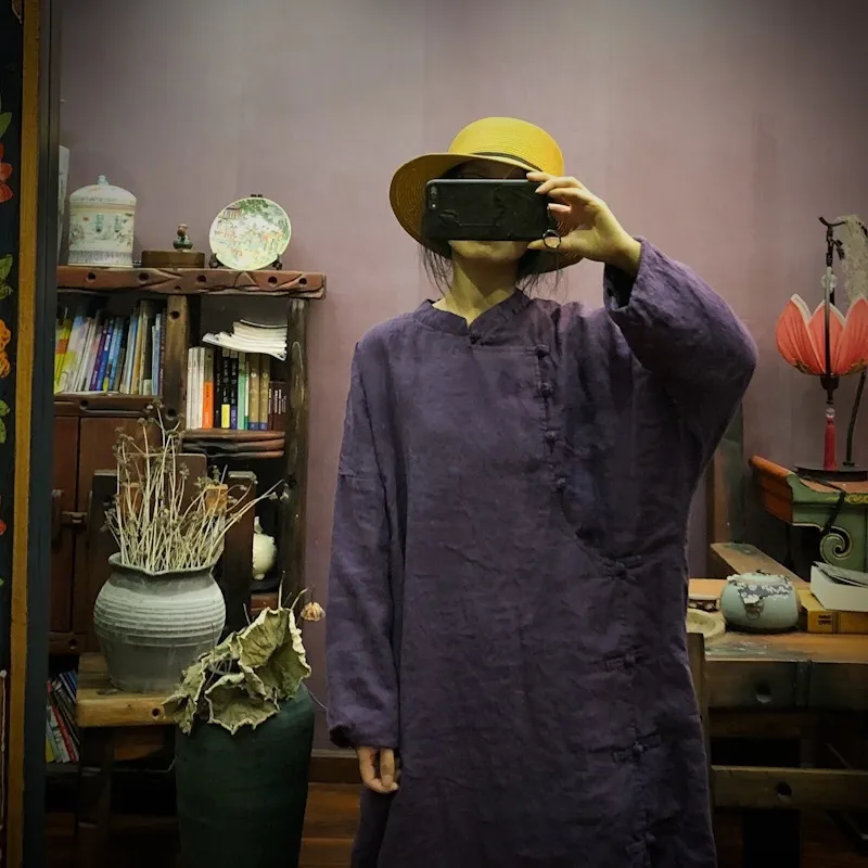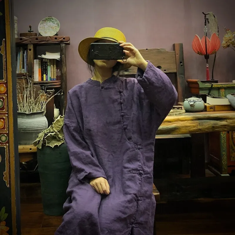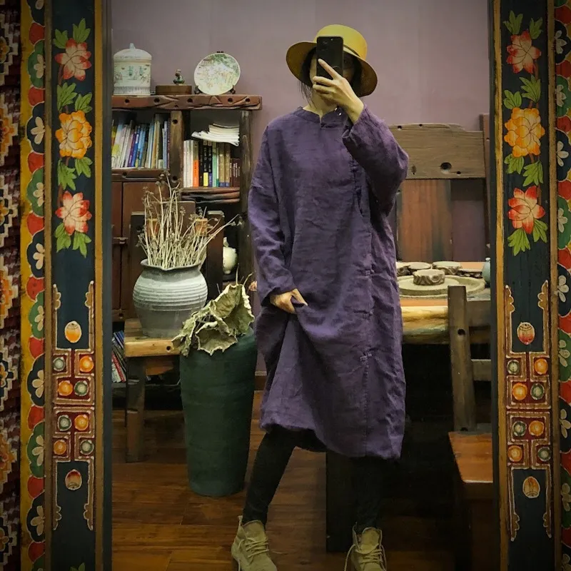 衣都精品- 2023新款民族風純亞麻水洗玉扣連衣裙
