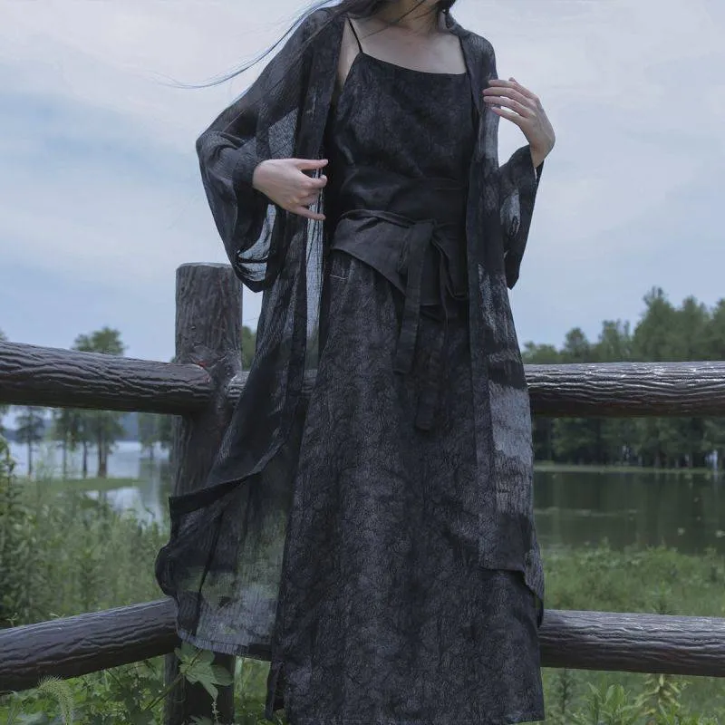 衣都精品- 2023新款夏季薄款雪紡寬鬆墨煙外套