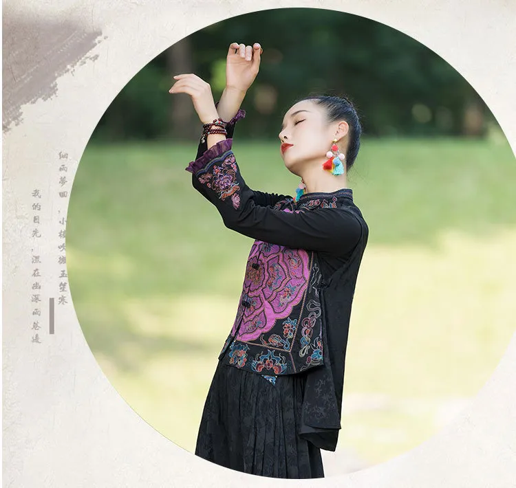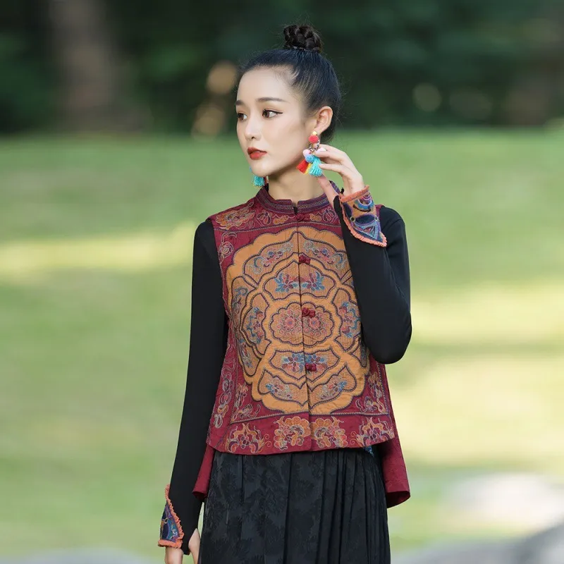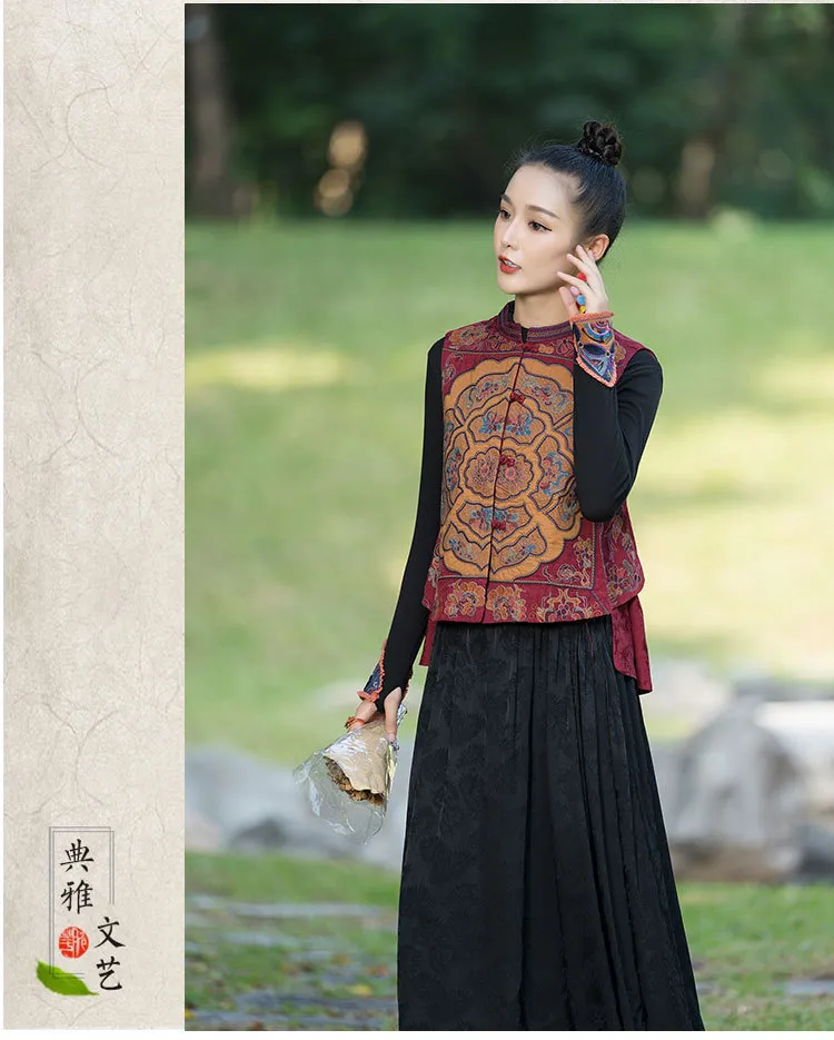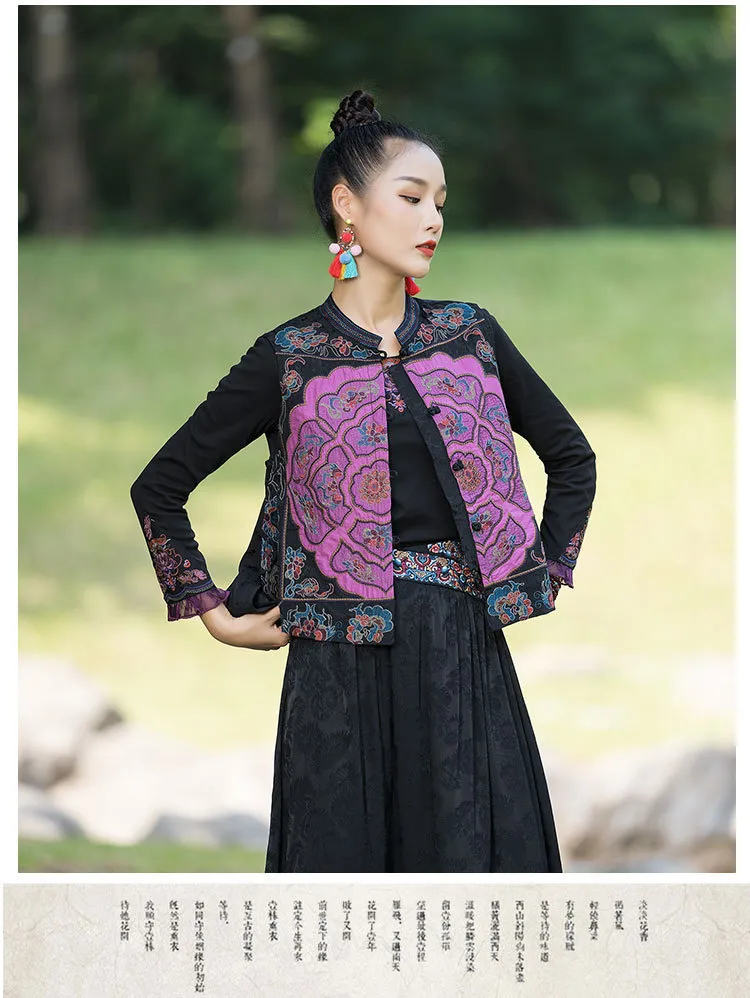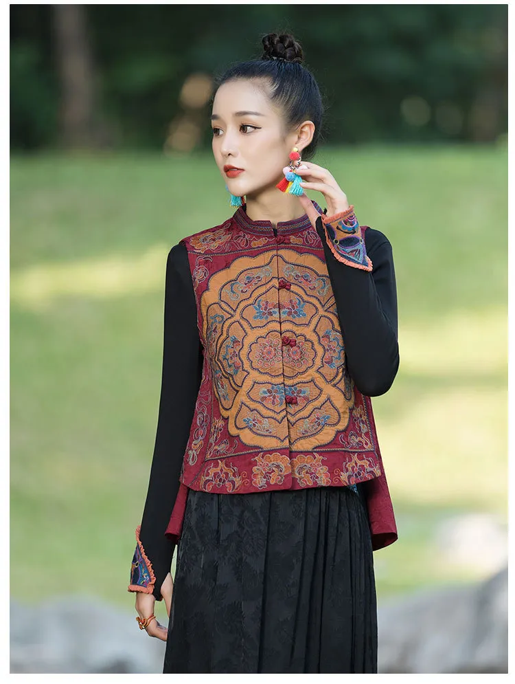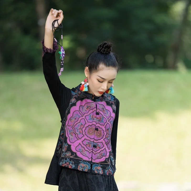 衣都精品- 2023新款民族風刺繡盤扣短款無袖外套