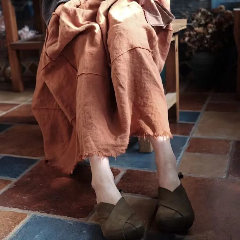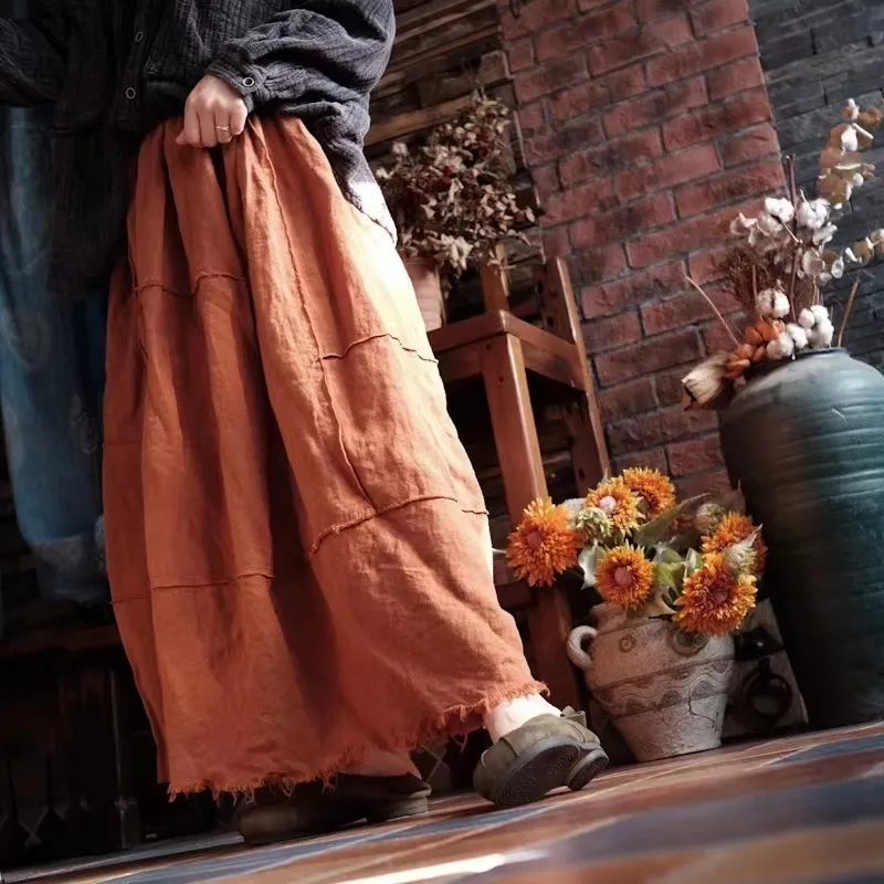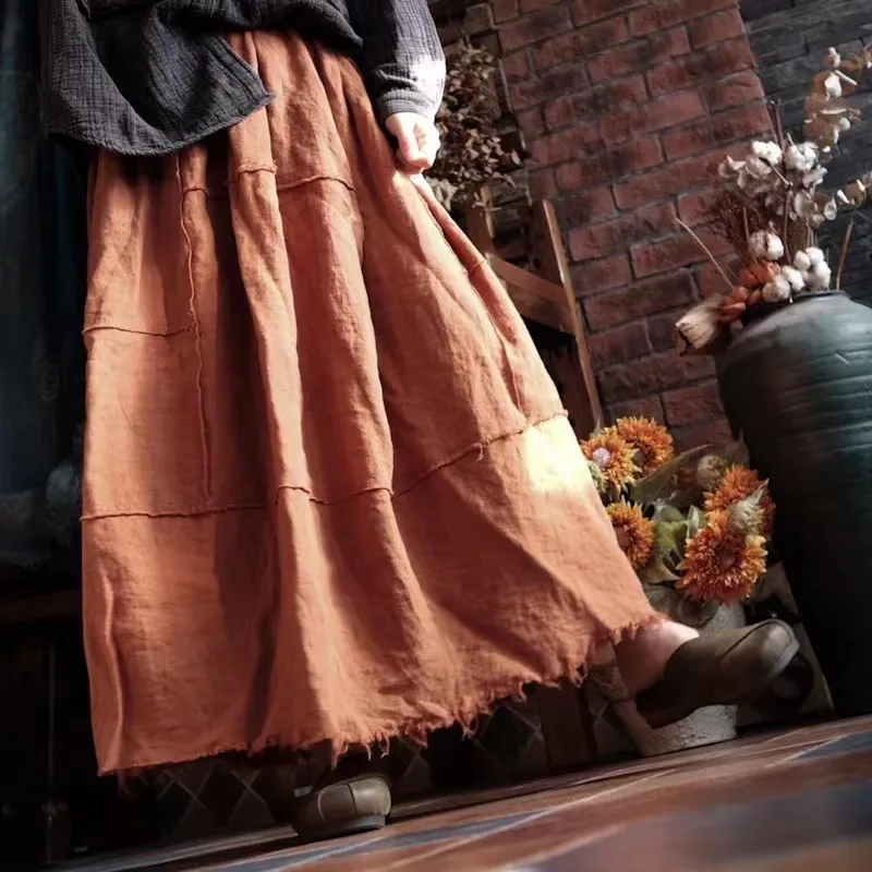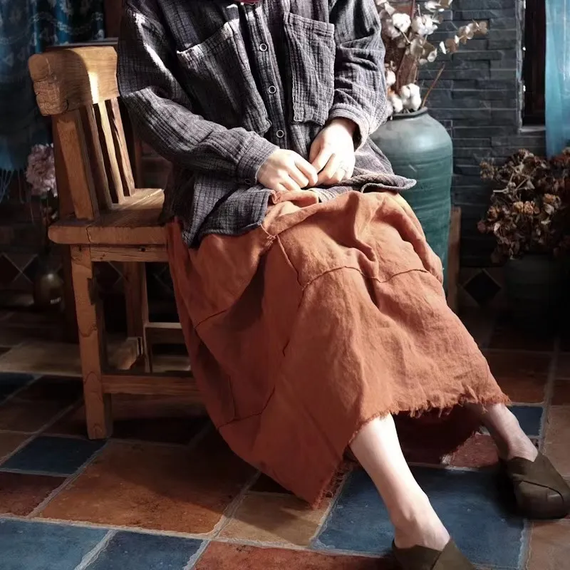 衣都精品- 2023新款民族風雪花洗做舊鬆緊腰半身裙