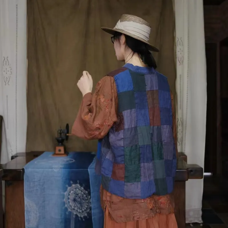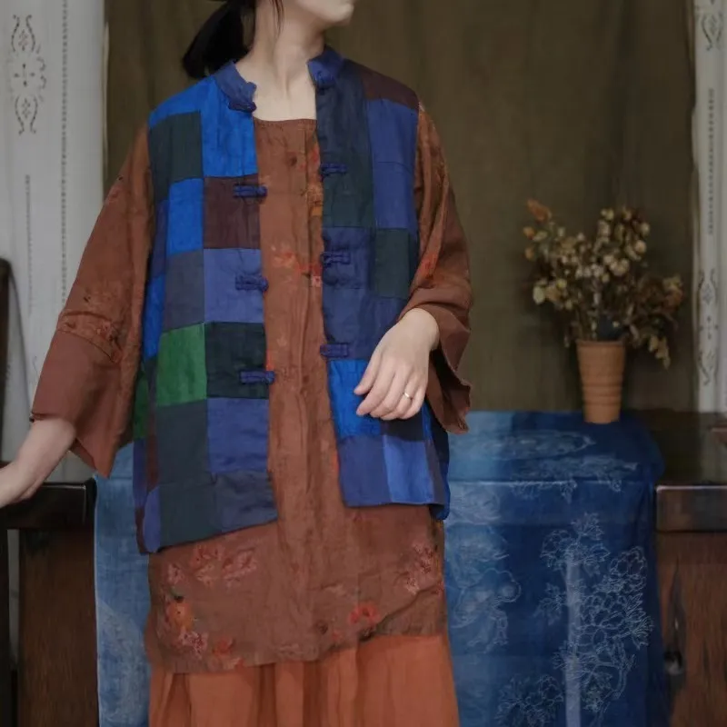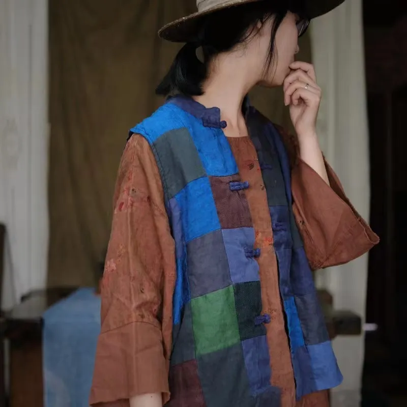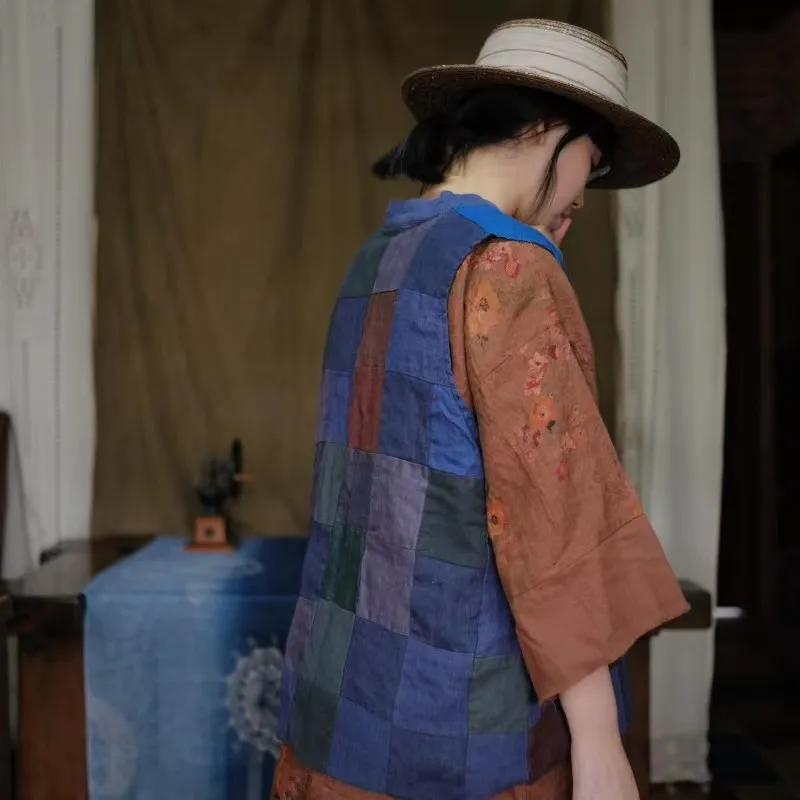 衣都精品- 2023新款復古乞丐風麻料拼布對襟外套