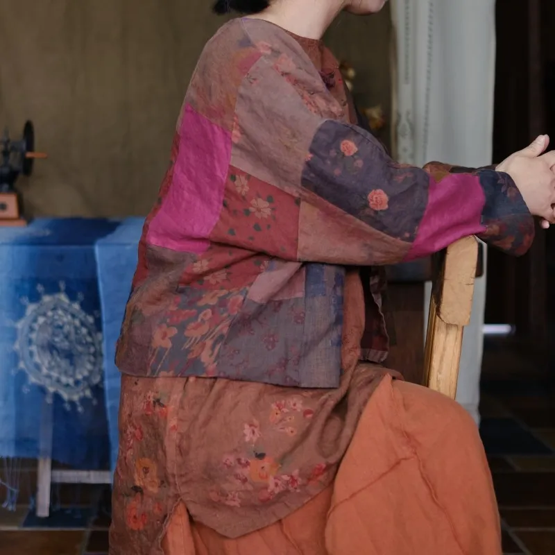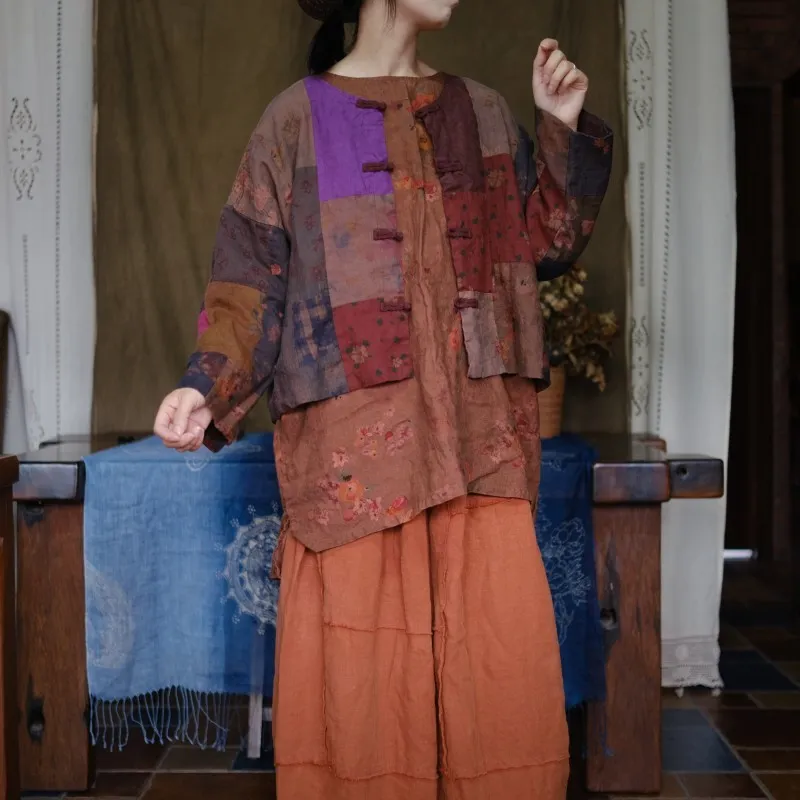 衣都精品- 2023新款復古乞丐風麻料拼布對襟外套