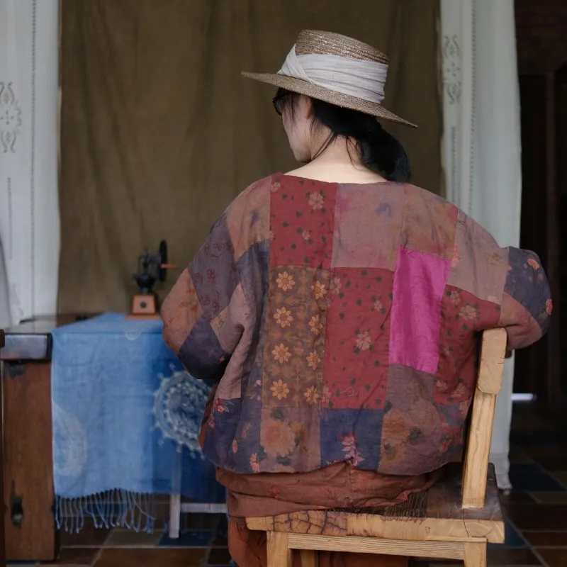衣都精品- 2023新款復古乞丐風麻料拼布蝙蝠袖外套